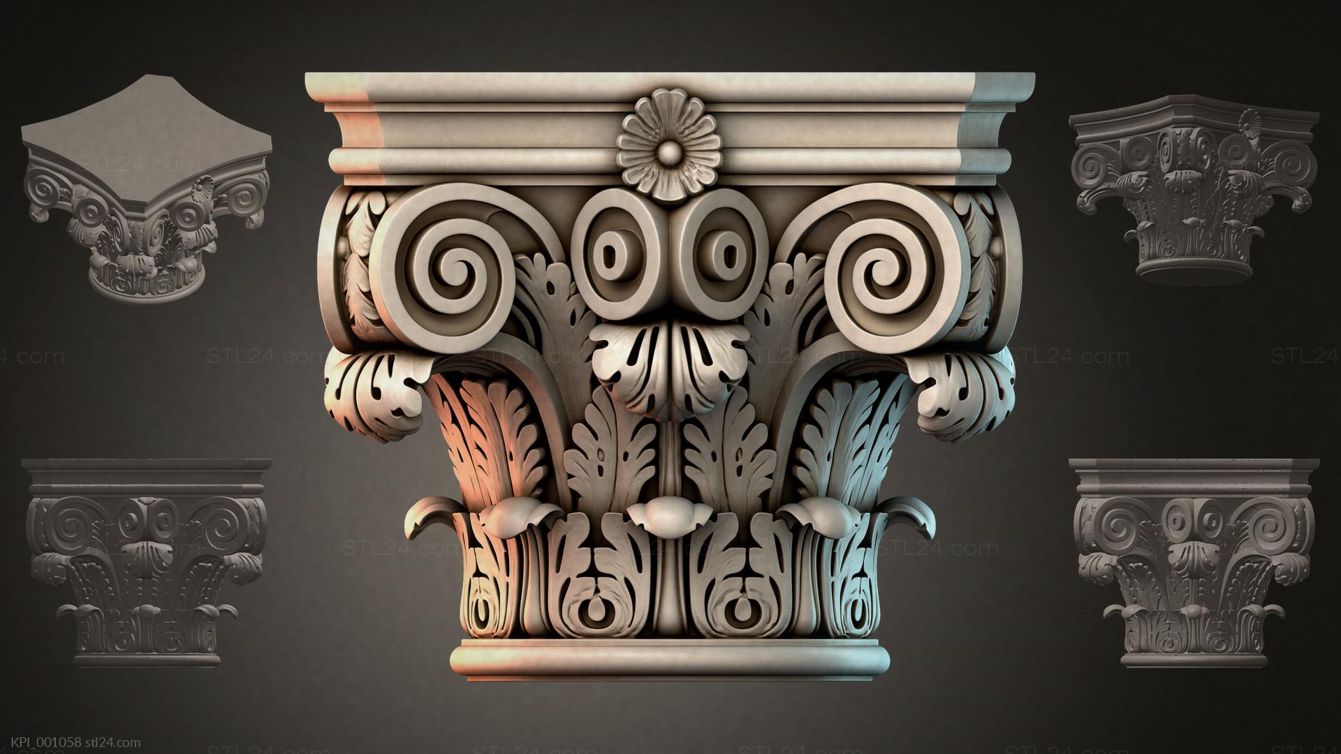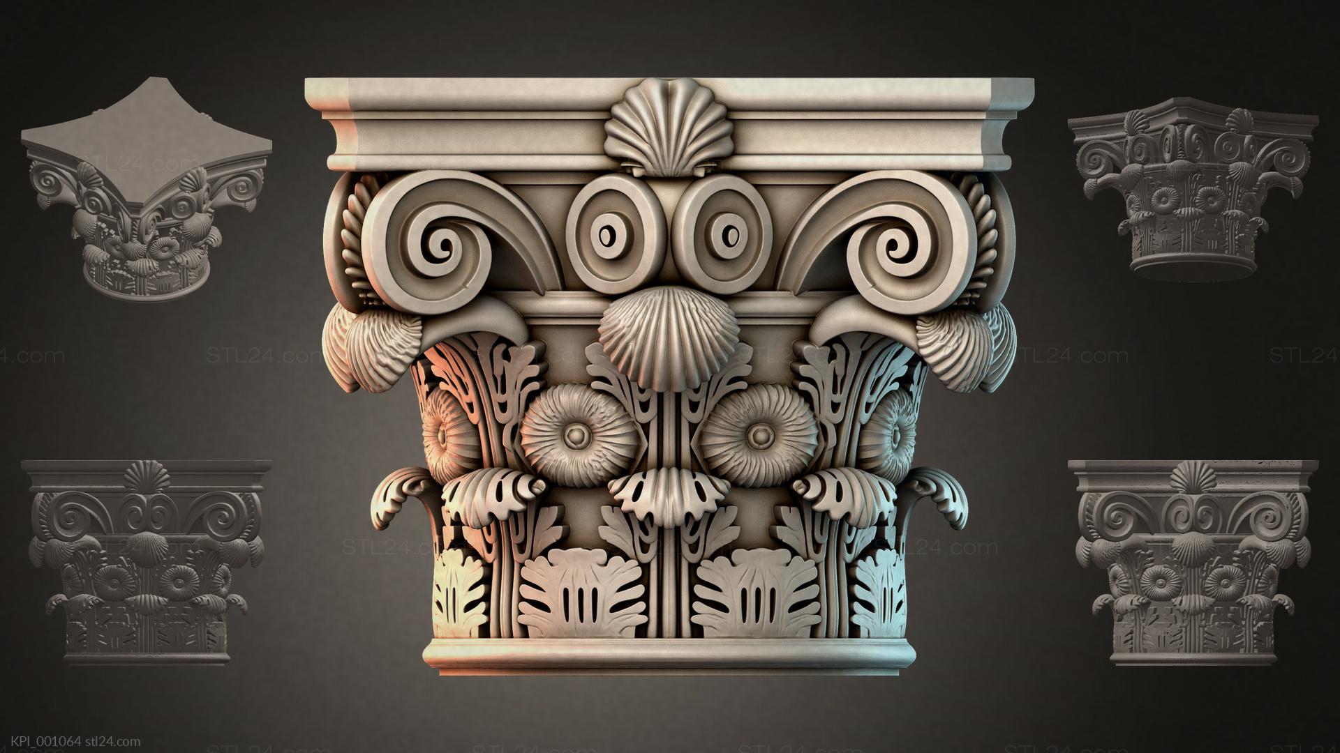 3D STL МОДЕЛЬ ДЛЯ ЧПУ Капители разные KPI_001032