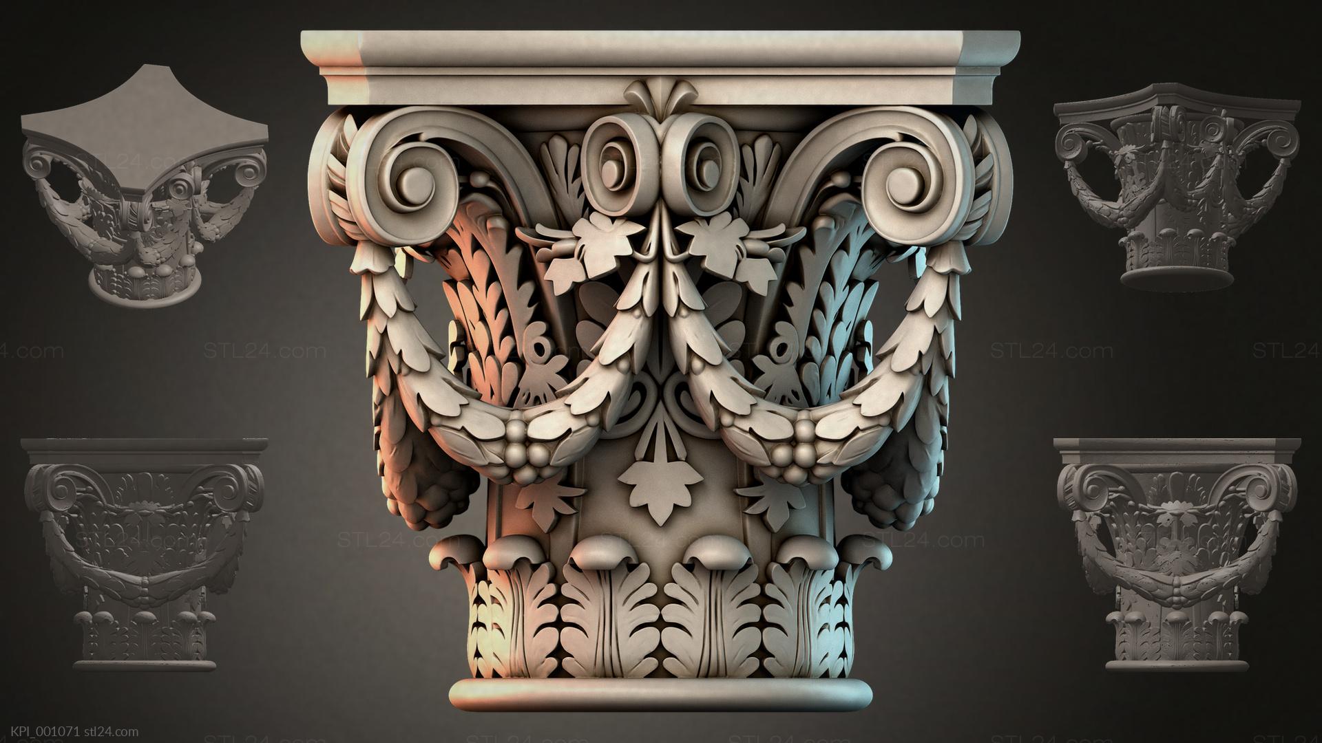 3D STL МОДЕЛЬ ДЛЯ ЧПУ Капители разные KPI_001049
