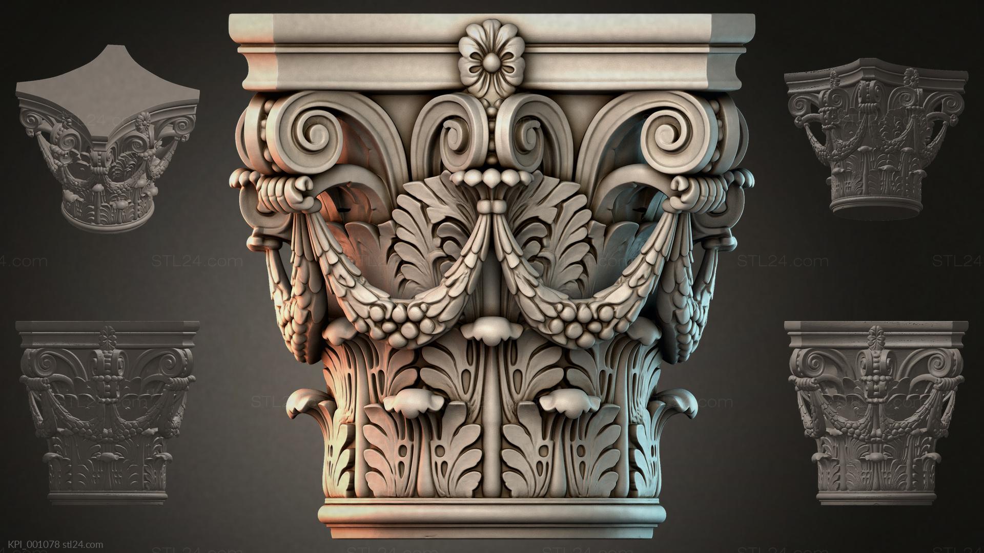 3D STL МОДЕЛЬ ДЛЯ ЧПУ Капители разные KPI_001053
