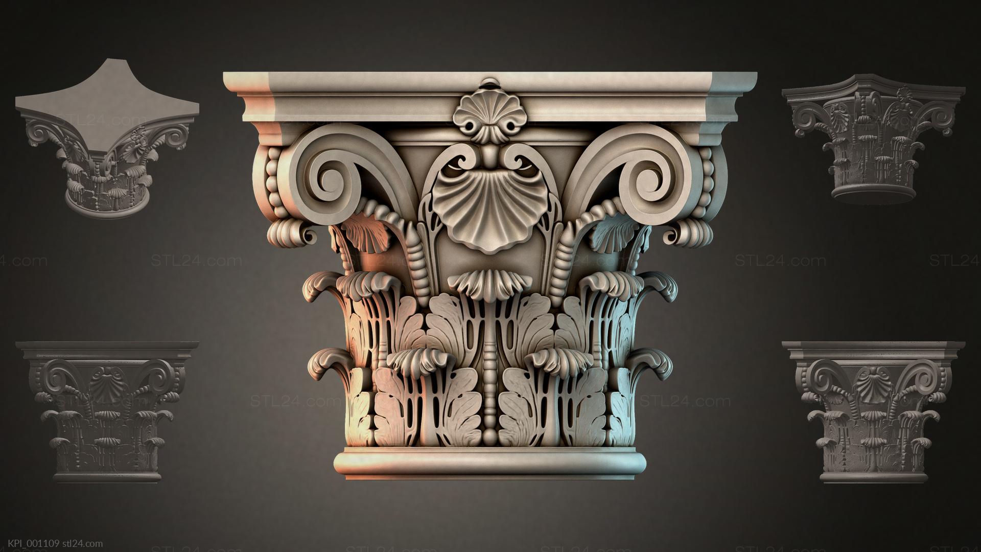 3D STL МОДЕЛЬ ДЛЯ ЧПУ и 3D печати - Капители разные KPI 001109