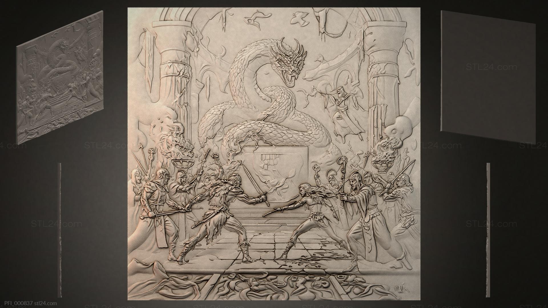 3D STL МОДЕЛЬ ДЛЯ ЧПУ Панно фентези PFI_000804