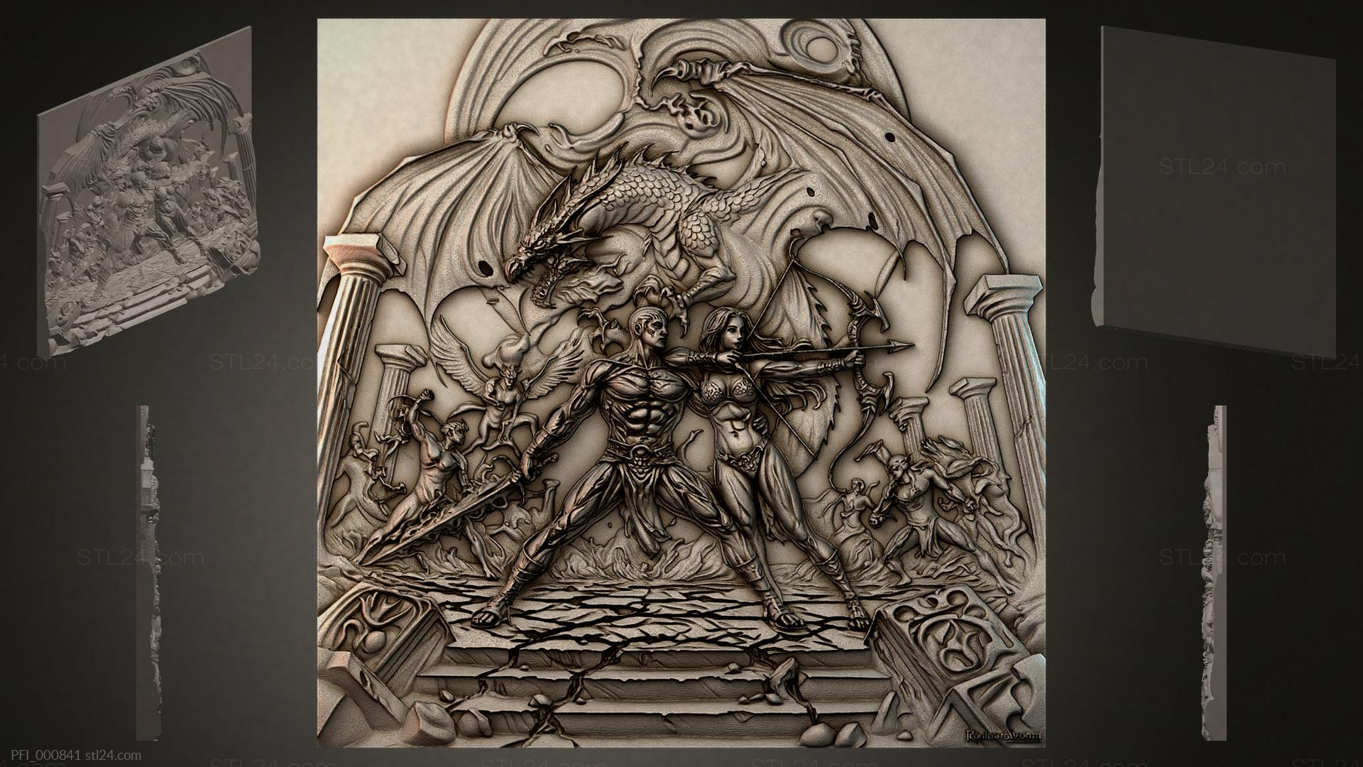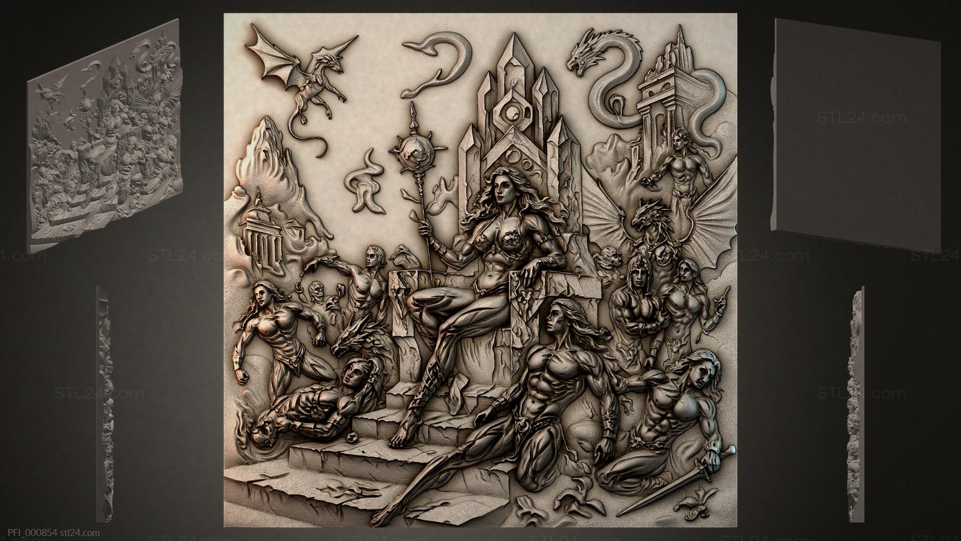 3D STL МОДЕЛЬ ДЛЯ ЧПУ Панно фентези PFI_000874
