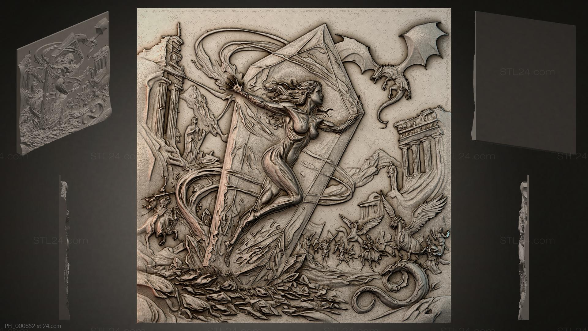3D STL МОДЕЛЬ ДЛЯ ЧПУ Панно фентези PFI_000891