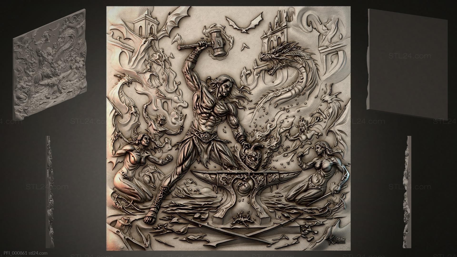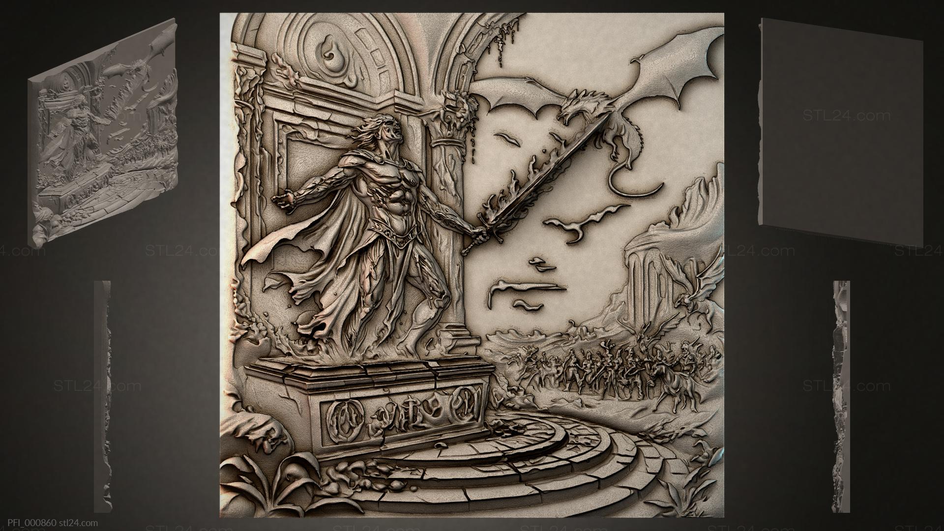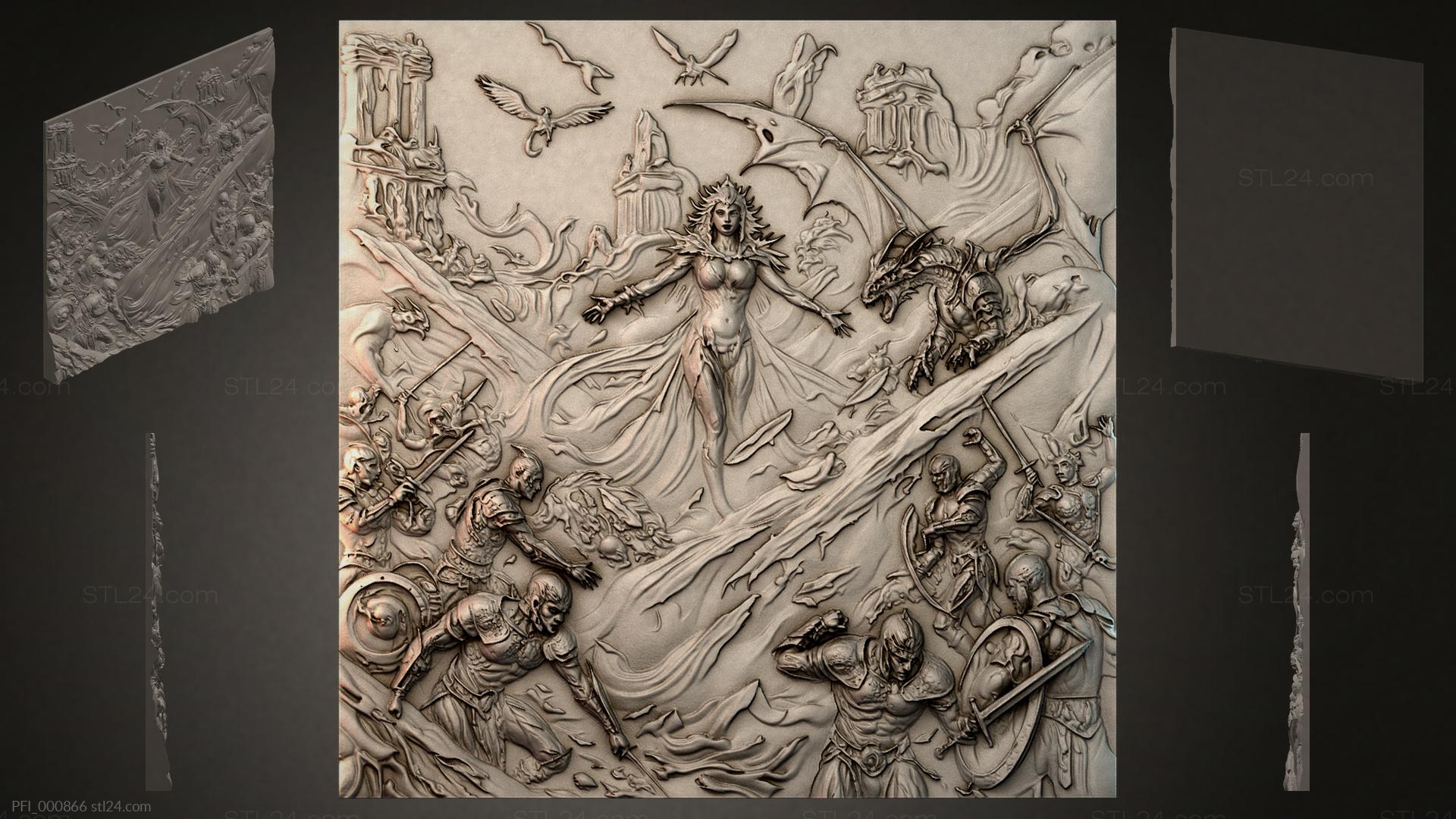 3D STL МОДЕЛЬ ДЛЯ ЧПУ Панно фентези PFI_000870