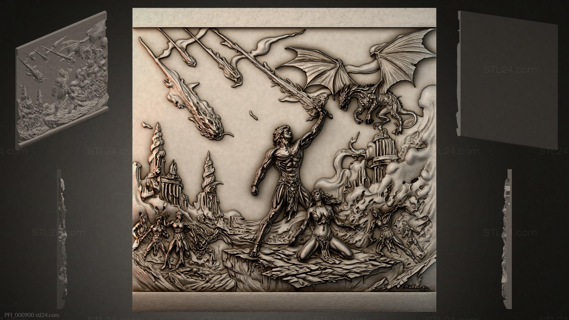3D STL МОДЕЛЬ ДЛЯ ЧПУ Панно фентези PFI_000899
