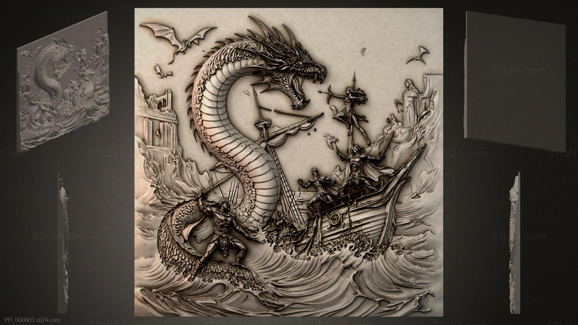 3D STL МОДЕЛЬ ДЛЯ ЧПУ и 3D печати - Панно фентези PFI 000803