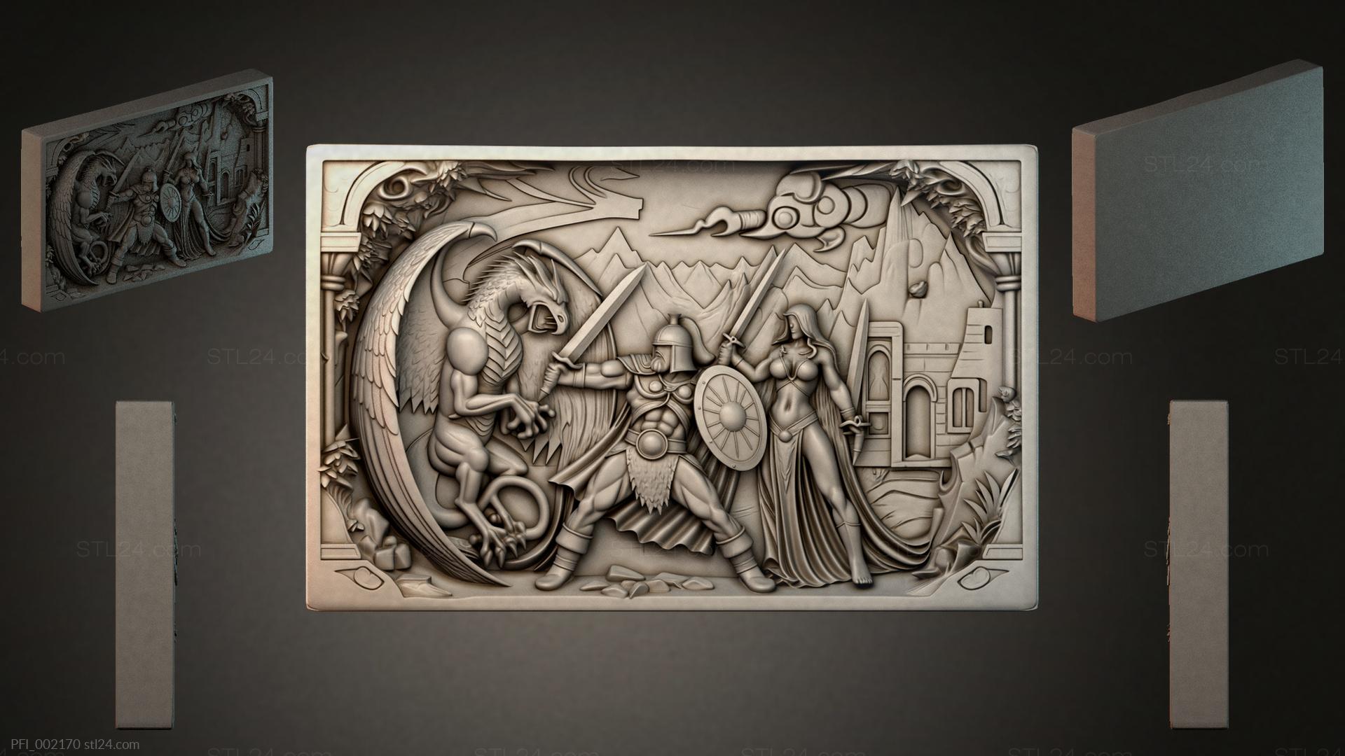 3D STL МОДЕЛЬ ДЛЯ ЧПУ и 3D печати - Панно фентези PFI 002170