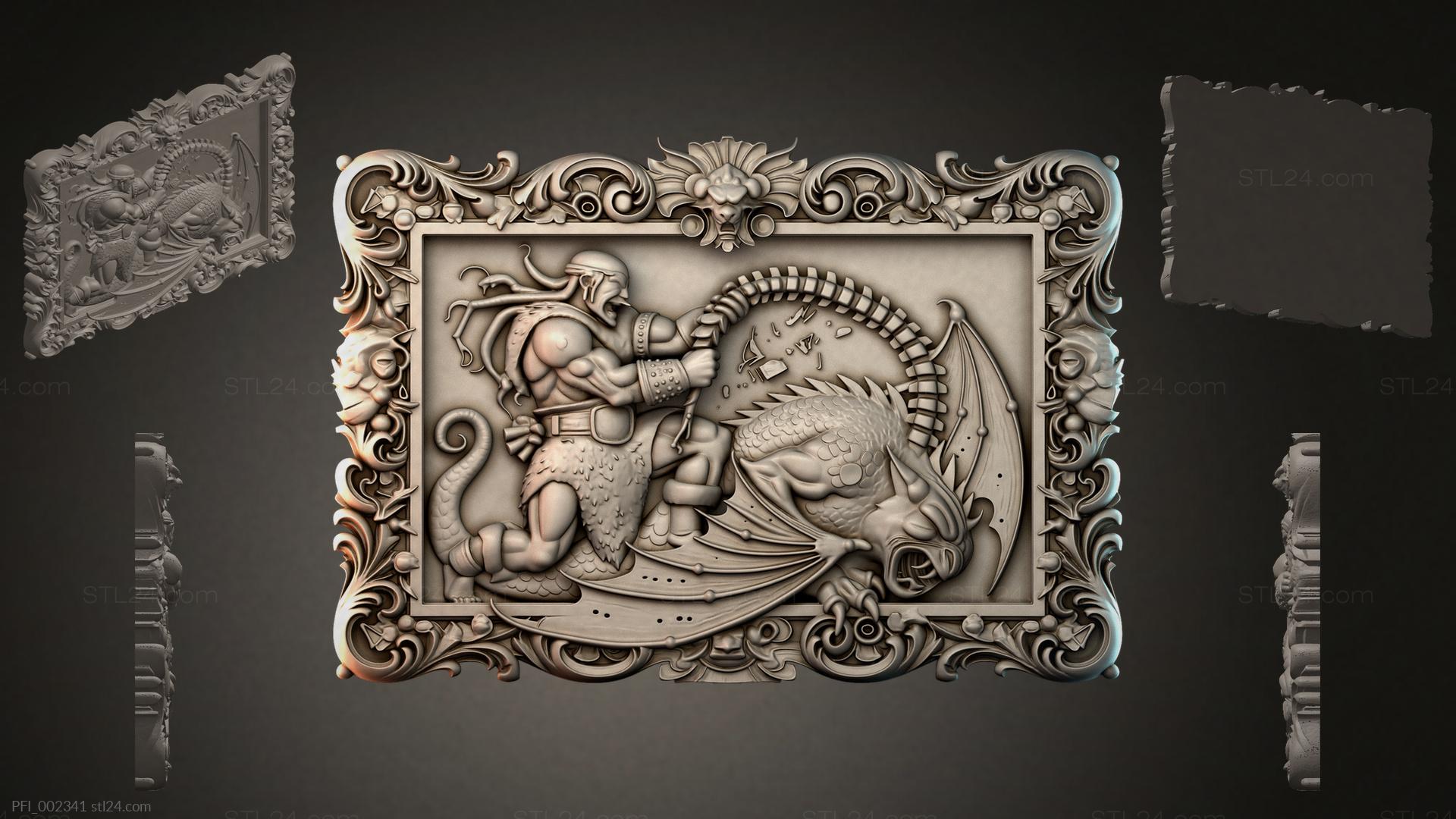 3D STL МОДЕЛЬ ДЛЯ ЧПУ и 3D печати - Панно фентези PFI 002341