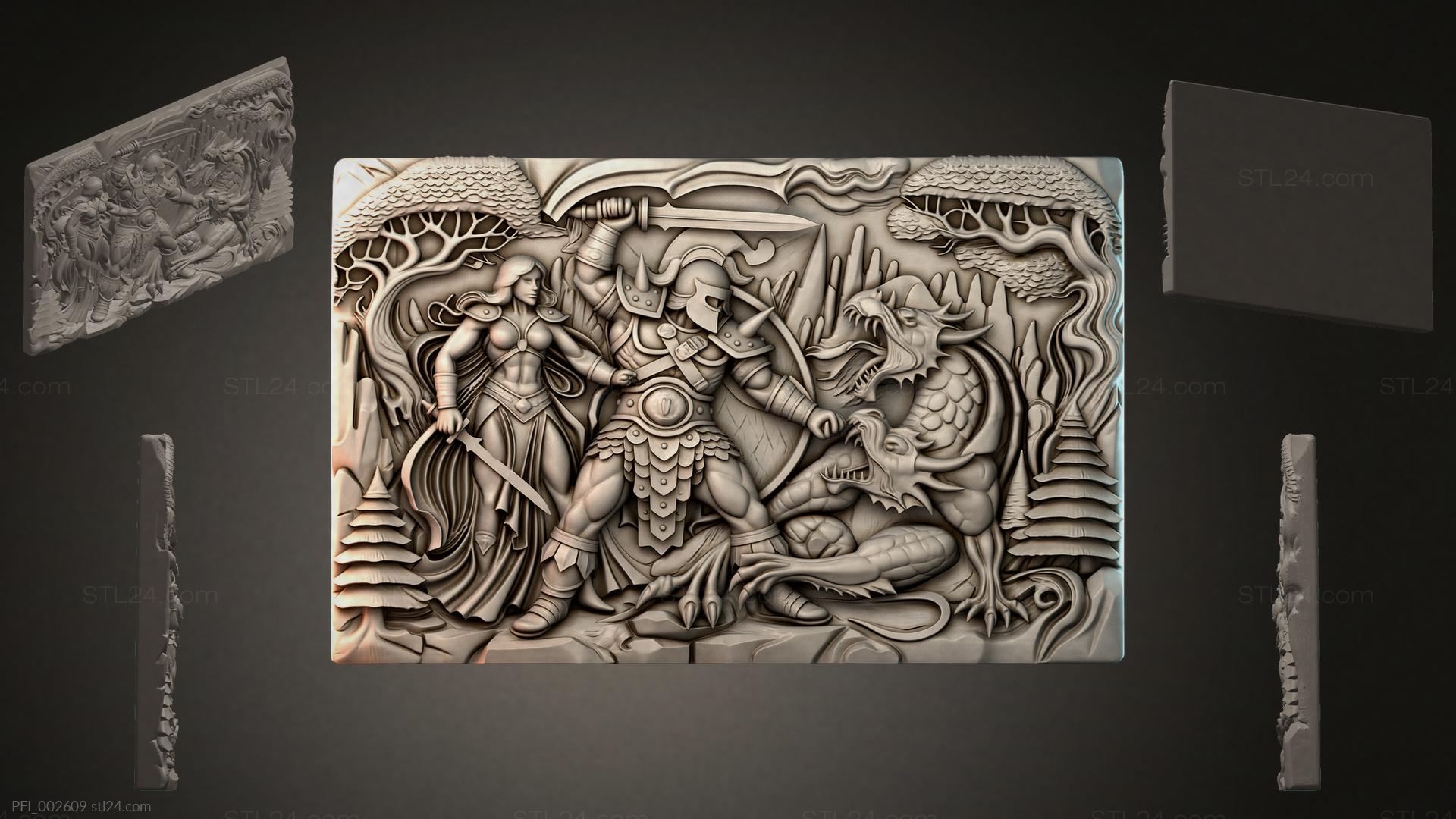 3D STL МОДЕЛЬ ДЛЯ ЧПУ и 3D печати - Панно фентези PFI 002609