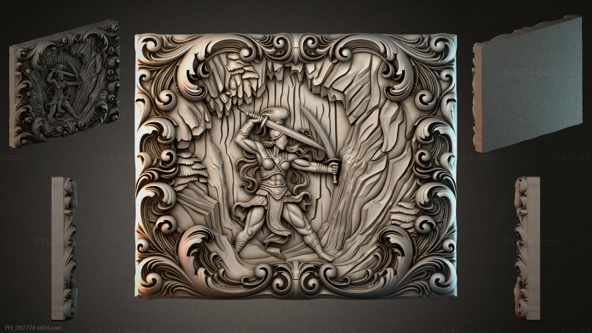 3D STL МОДЕЛЬ ДЛЯ ЧПУ и 3D печати - Панно фентези PFI 002774