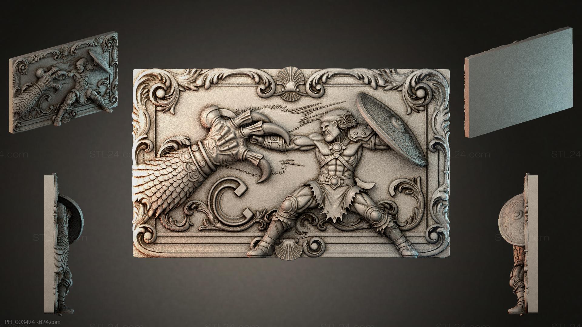 3D STL МОДЕЛЬ ДЛЯ ЧПУ и 3D печати - Панно фентези PFI 003494
