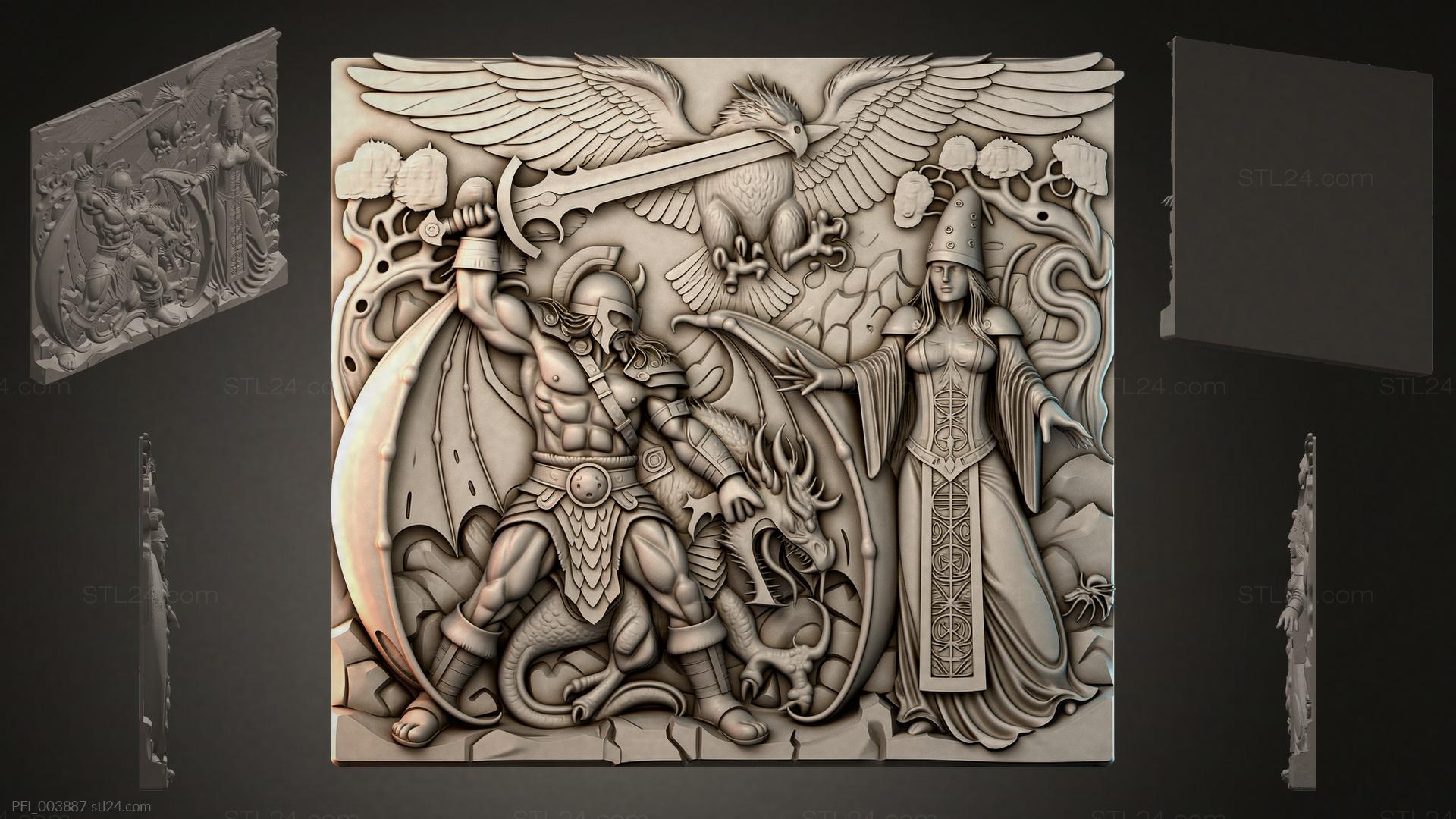 3D STL МОДЕЛЬ ДЛЯ ЧПУ и 3D печати - Панно фентези PFI 003887