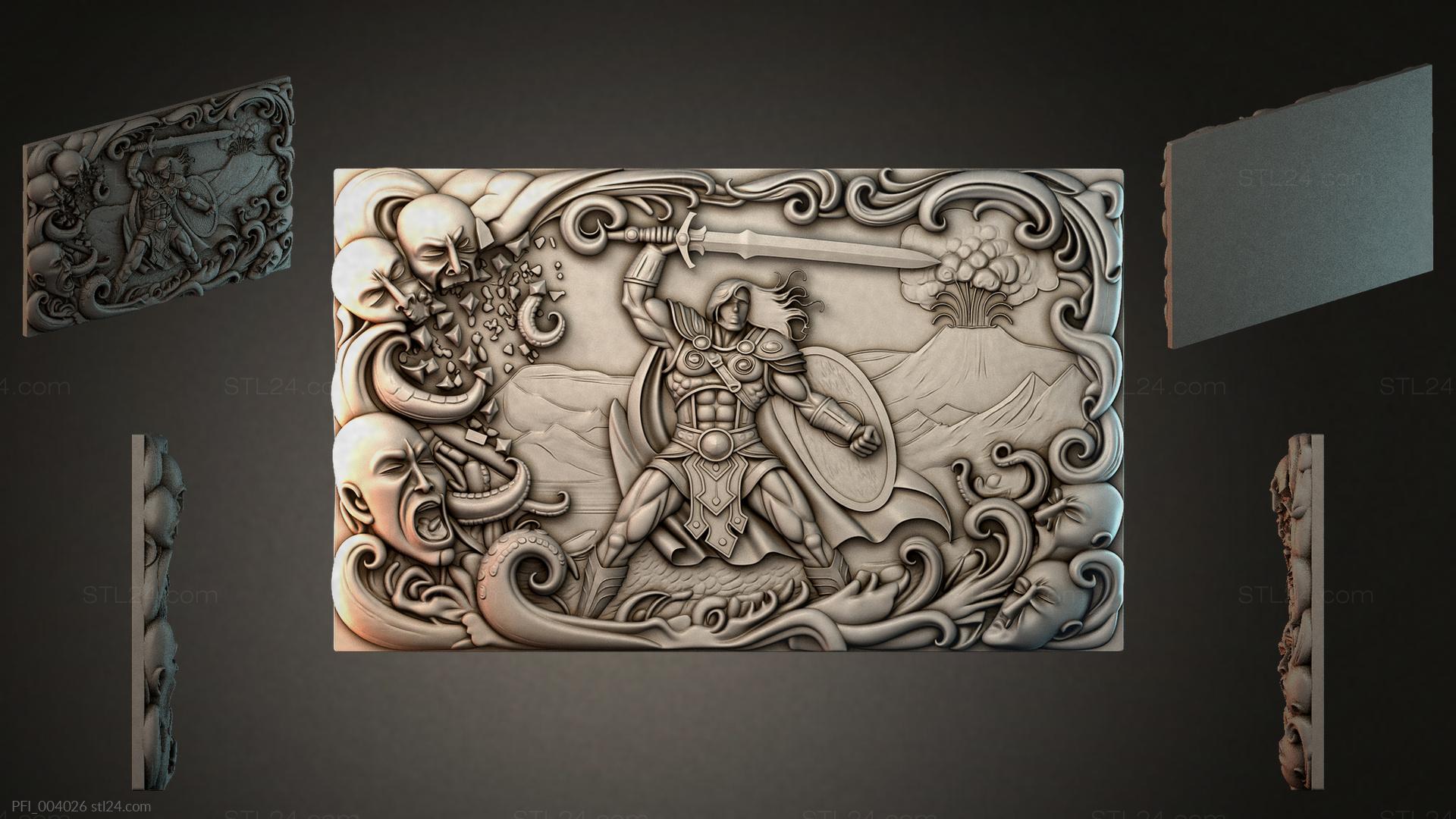 3D STL МОДЕЛЬ ДЛЯ ЧПУ и 3D печати - Панно фентези PFI 004026