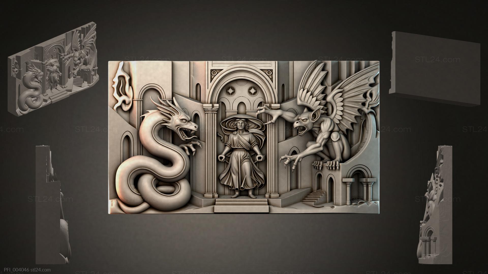 3D STL МОДЕЛЬ ДЛЯ ЧПУ и 3D печати - Панно фентези PFI 004046