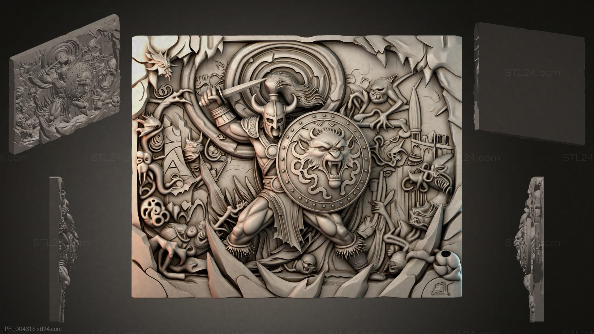 3D STL МОДЕЛЬ ДЛЯ ЧПУ и 3D печати - Панно фентези PFI 004316