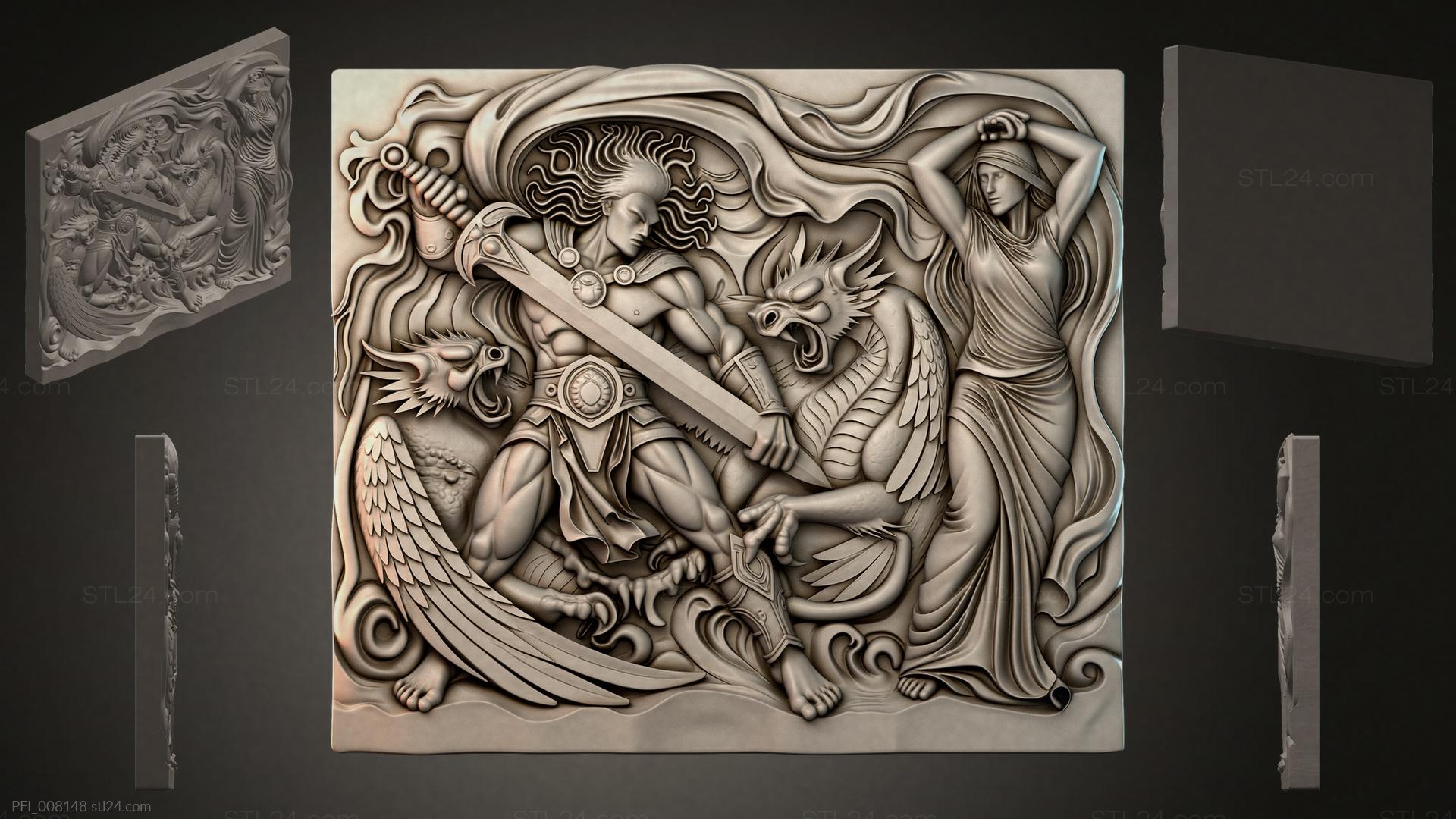 3D STL МОДЕЛЬ ДЛЯ ЧПУ и 3D печати - Панно фентези PFI 008148