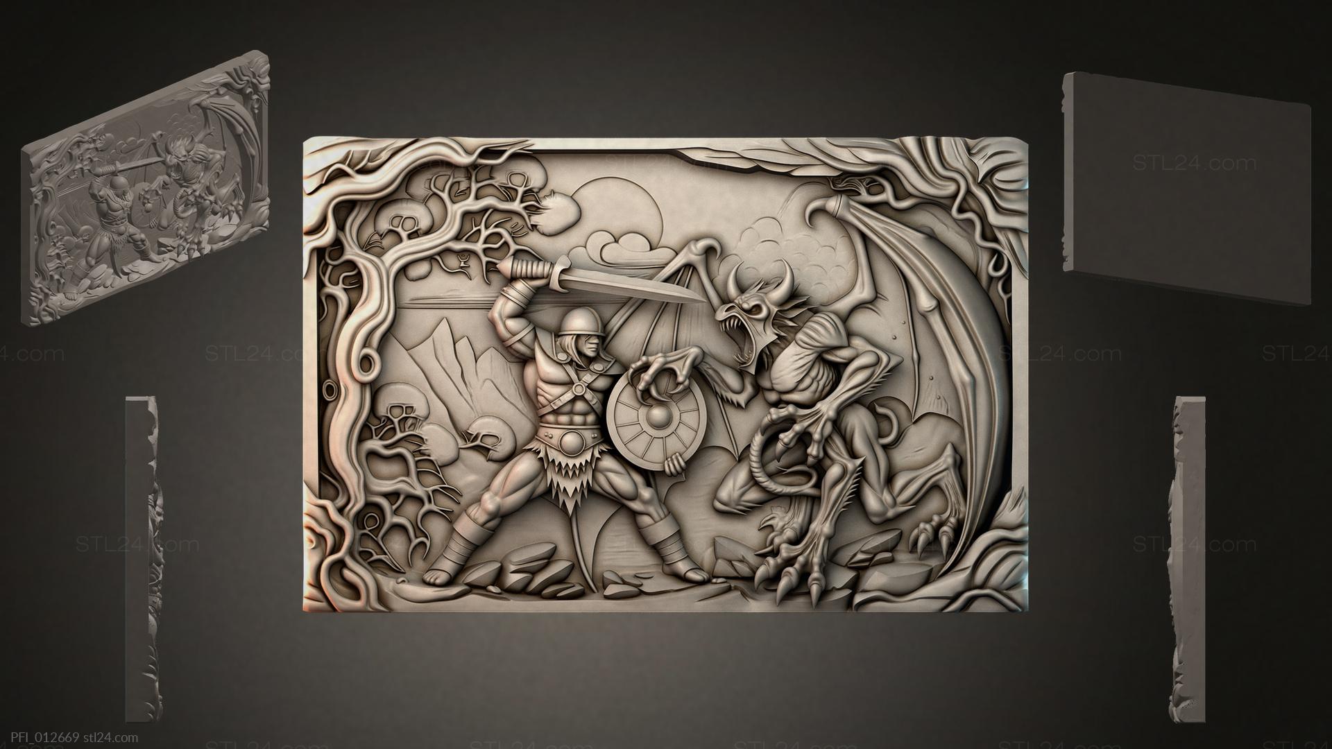 3D STL МОДЕЛЬ ДЛЯ ЧПУ и 3D печати - Панно фентези PFI 012669