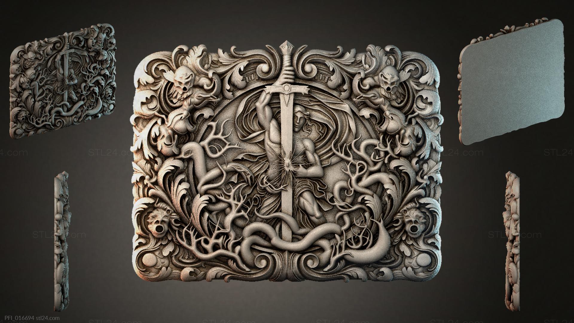 3D STL МОДЕЛЬ ДЛЯ ЧПУ и 3D печати - Панно фентези PFI 016694