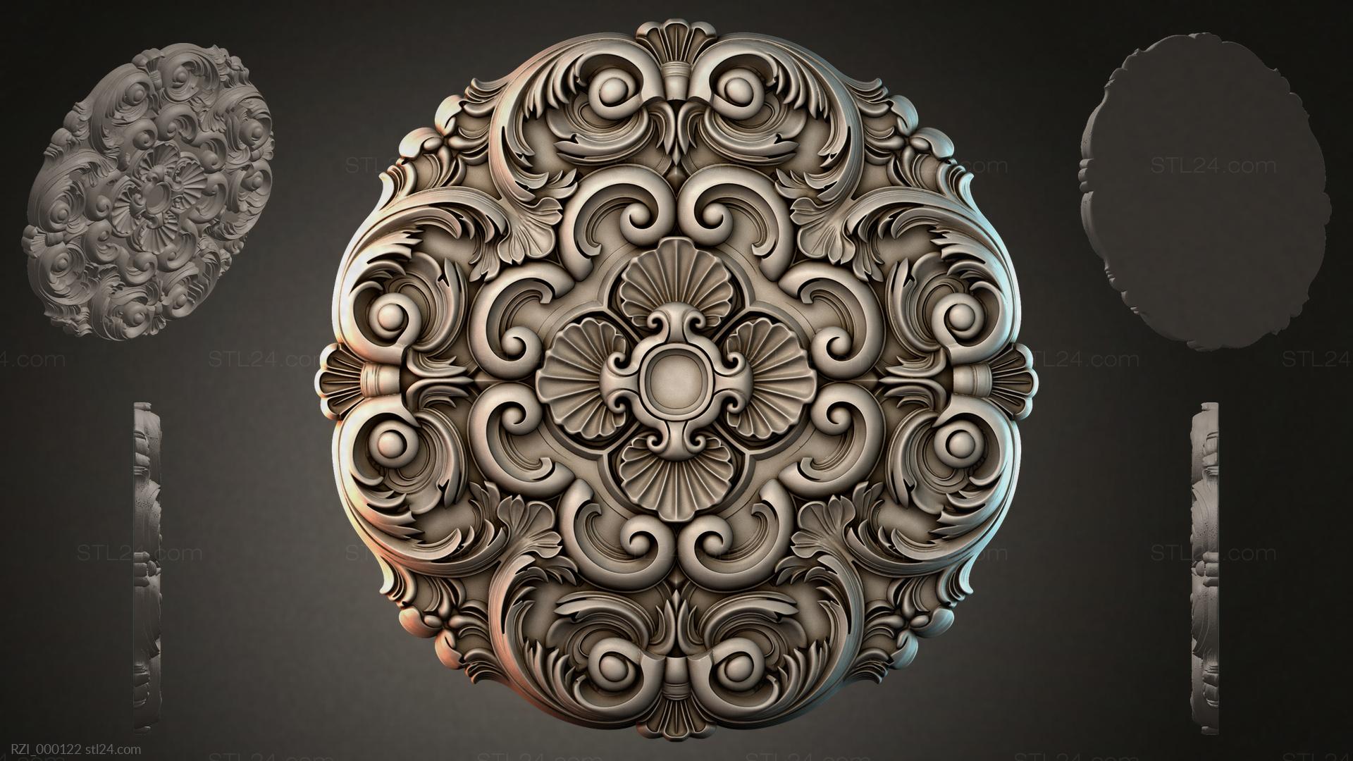 3D STL МОДЕЛЬ ДЛЯ ЧПУ Круглый декор, розетки RZI_000174