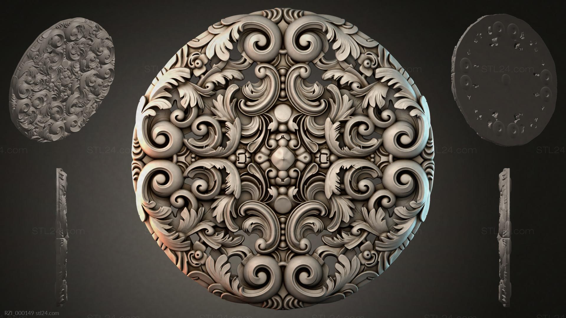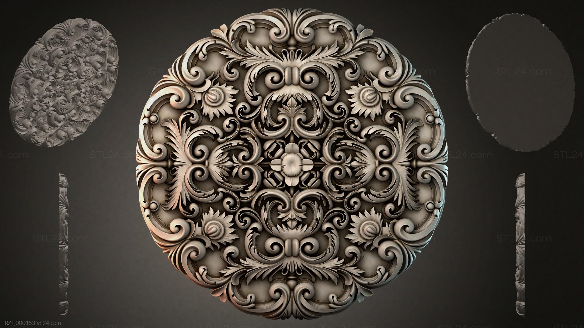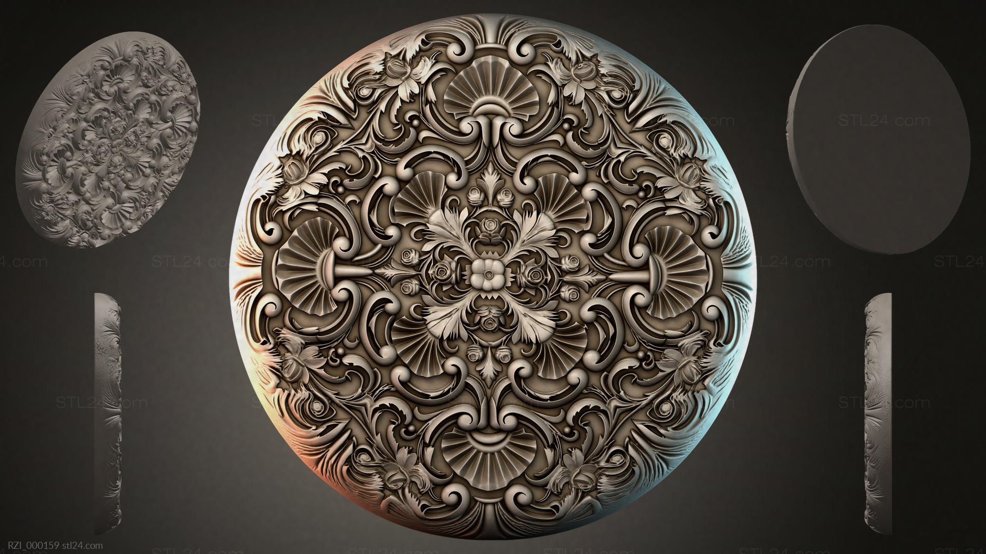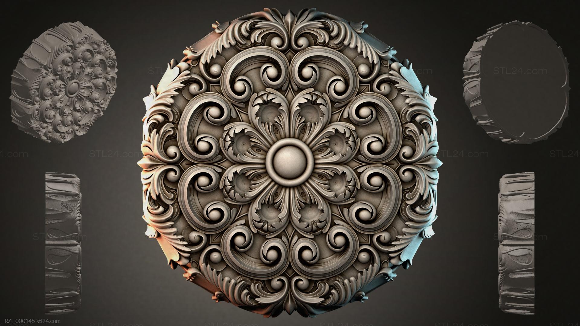 3D STL МОДЕЛЬ ДЛЯ ЧПУ Круглый декор, розетки RZI_000173
