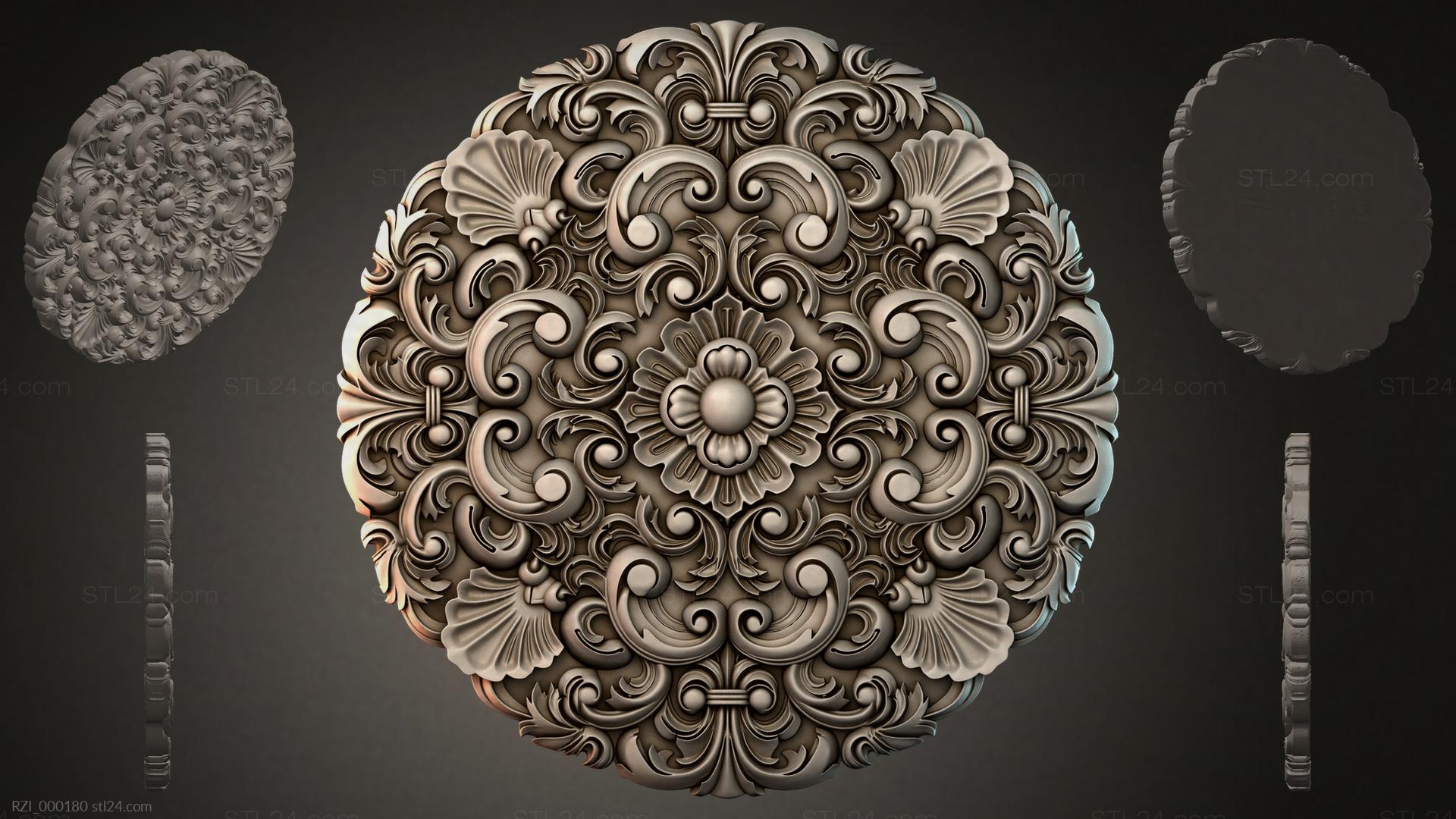 3D STL МОДЕЛЬ ДЛЯ ЧПУ Круглый декор, розетки RZI_000180