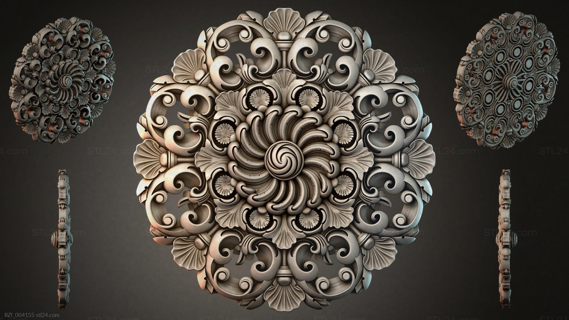 3D STL МОДЕЛЬ ДЛЯ ЧПУ Круглый декор, розетки RZI_004150