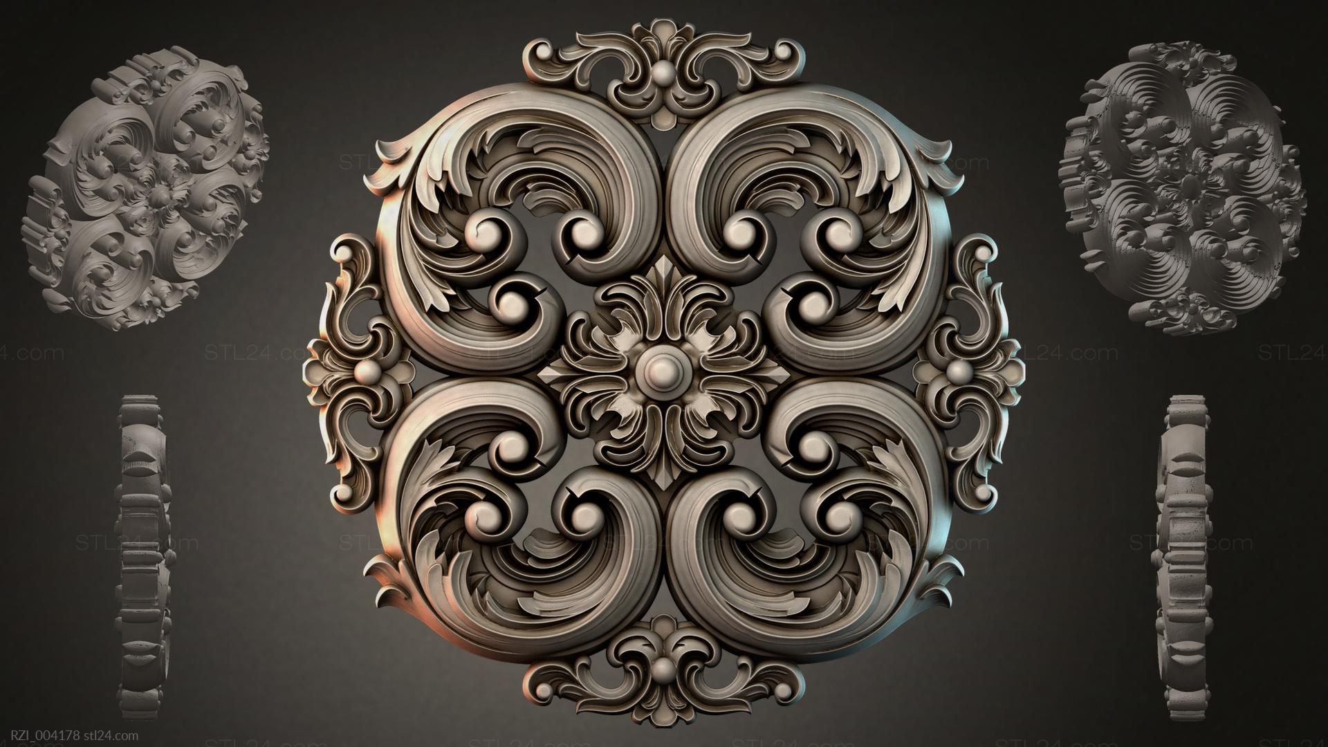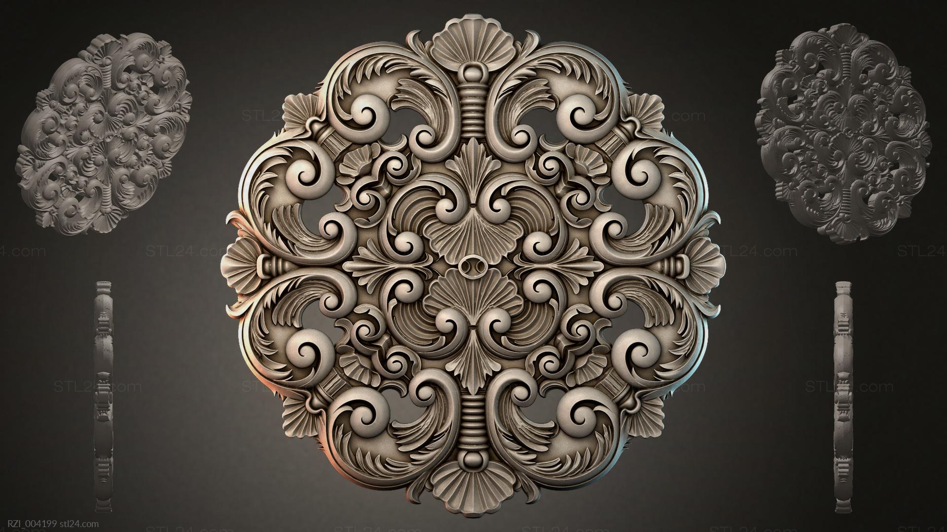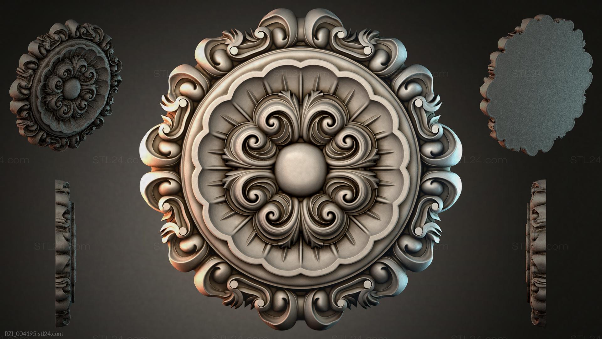 3D STL МОДЕЛЬ ДЛЯ ЧПУ Круглый декор, розетки RZI_004164