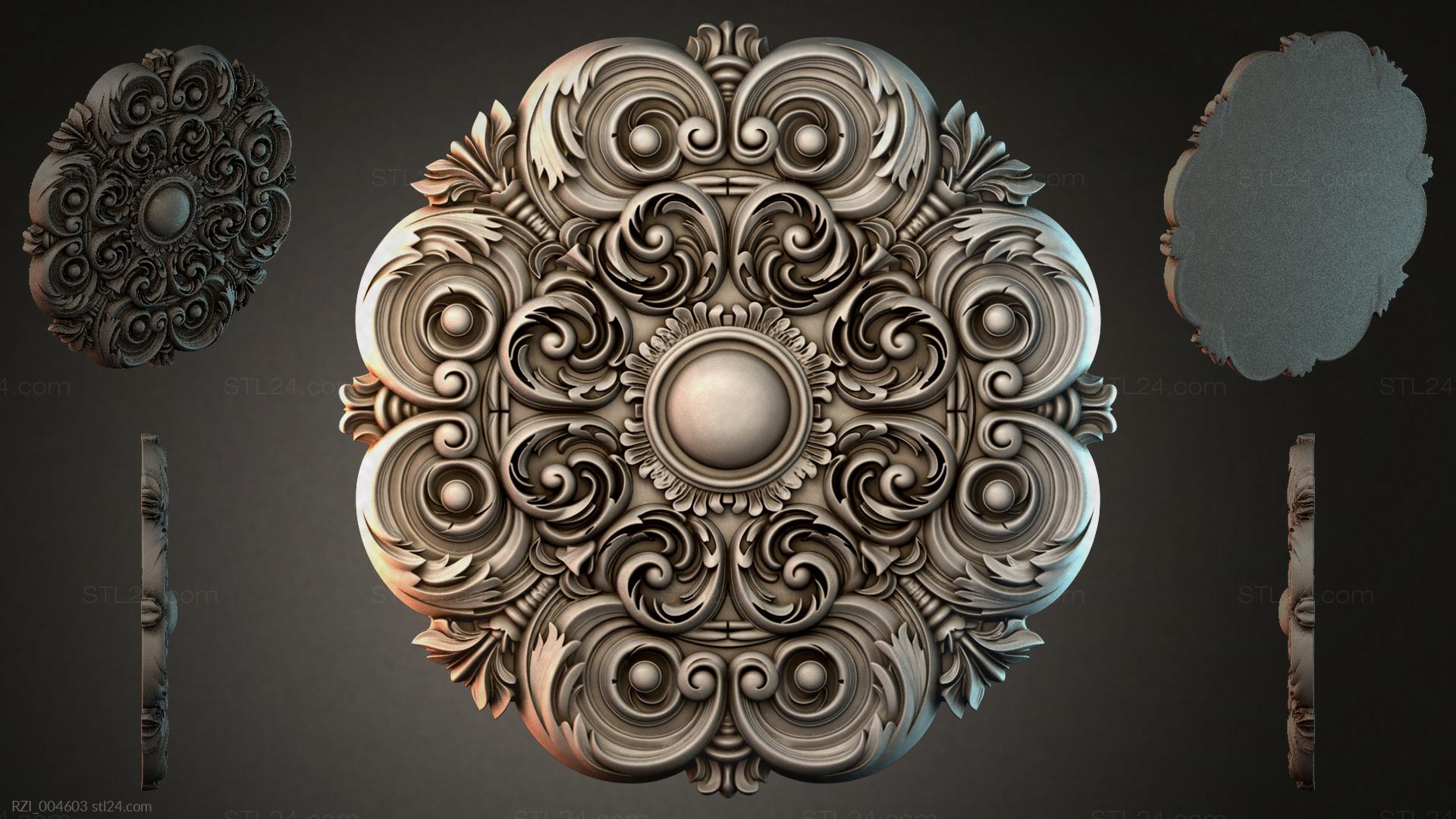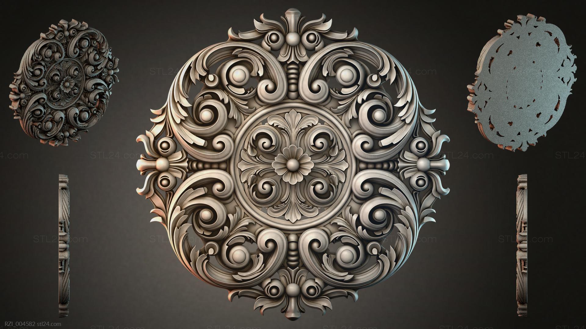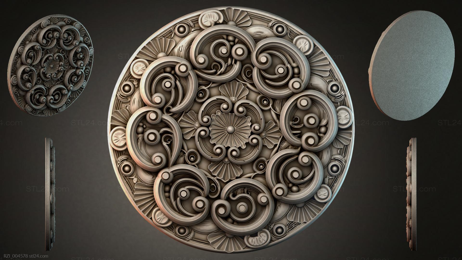 3D STL МОДЕЛЬ ДЛЯ ЧПУ Круглый декор, розетки RZI_004579