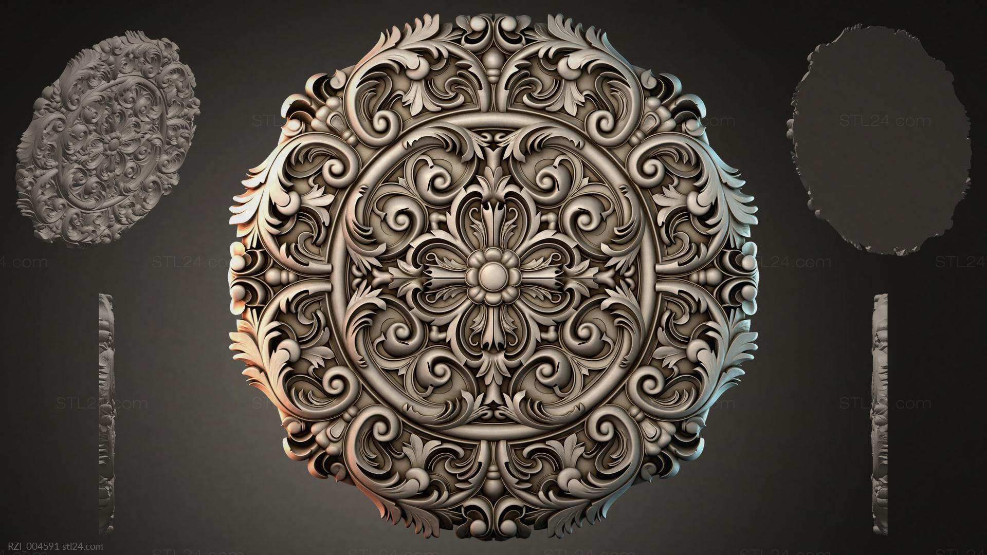 3D STL МОДЕЛЬ ДЛЯ ЧПУ Круглый декор, розетки RZI_004589