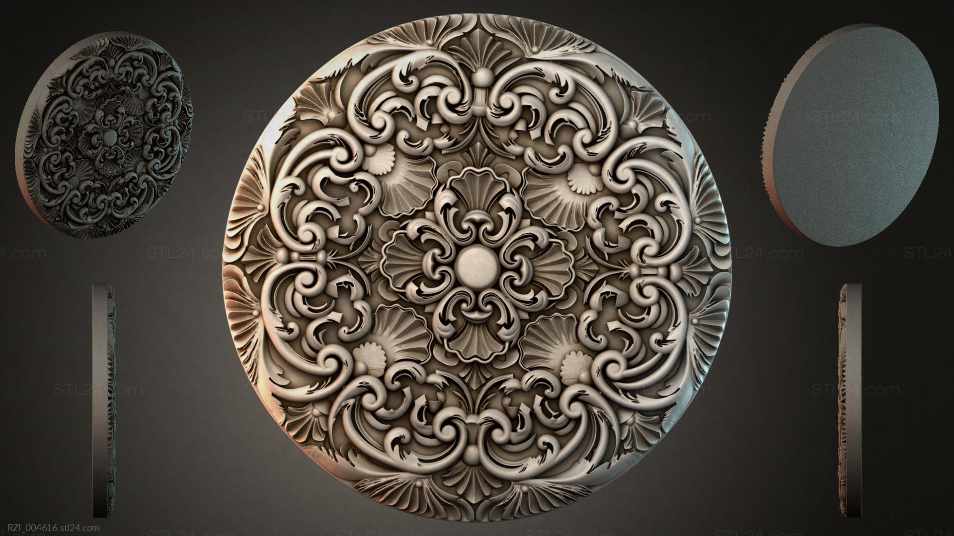 3D STL МОДЕЛЬ ДЛЯ ЧПУ Круглый декор, розетки RZI_004616