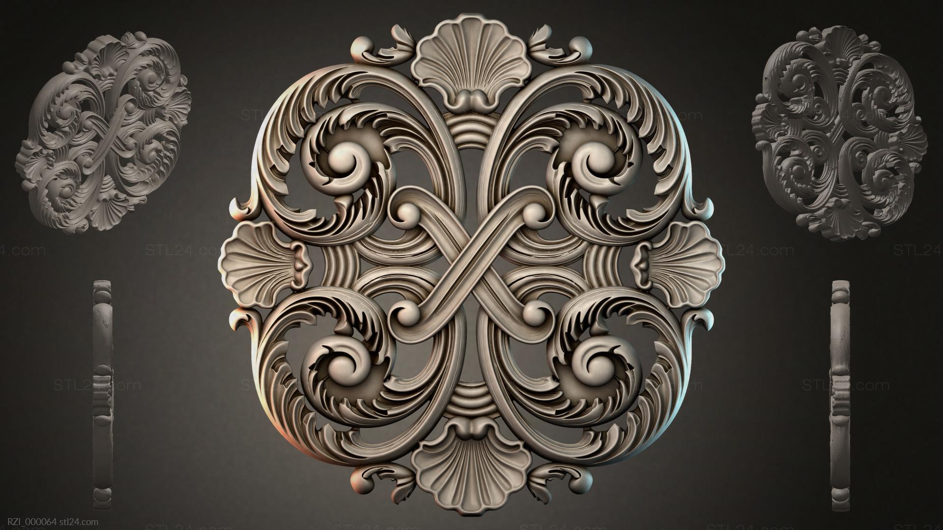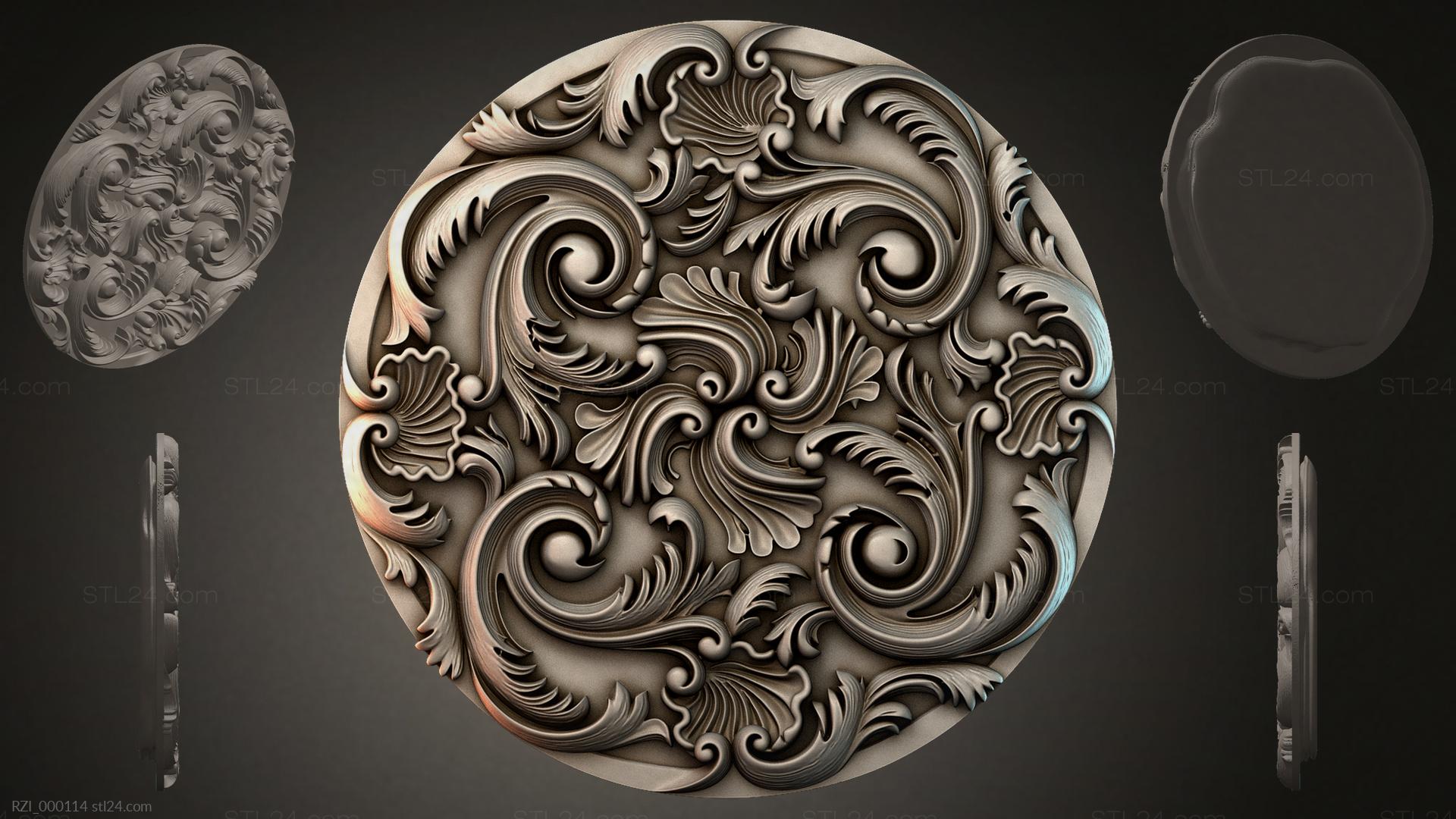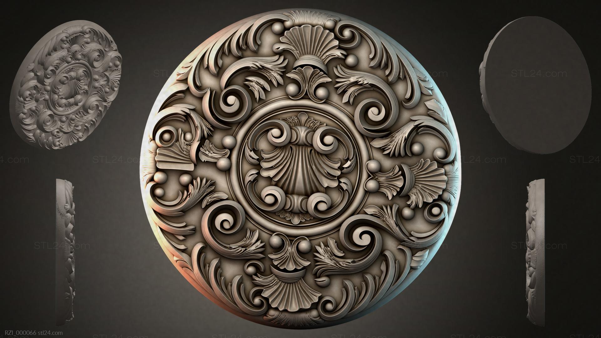 3D STL МОДЕЛЬ ДЛЯ ЧПУ Круглый декор, розетки RZI_000116