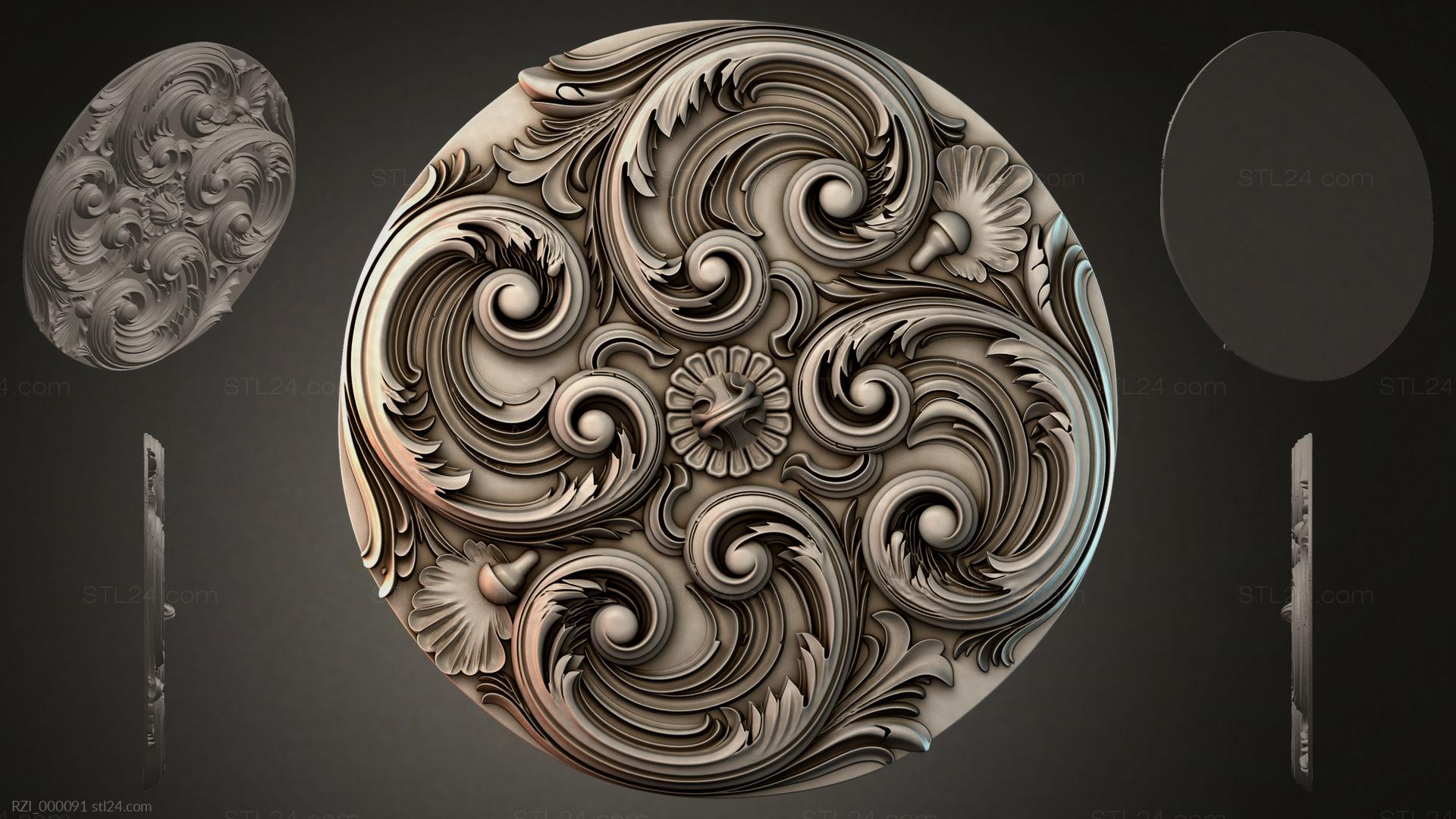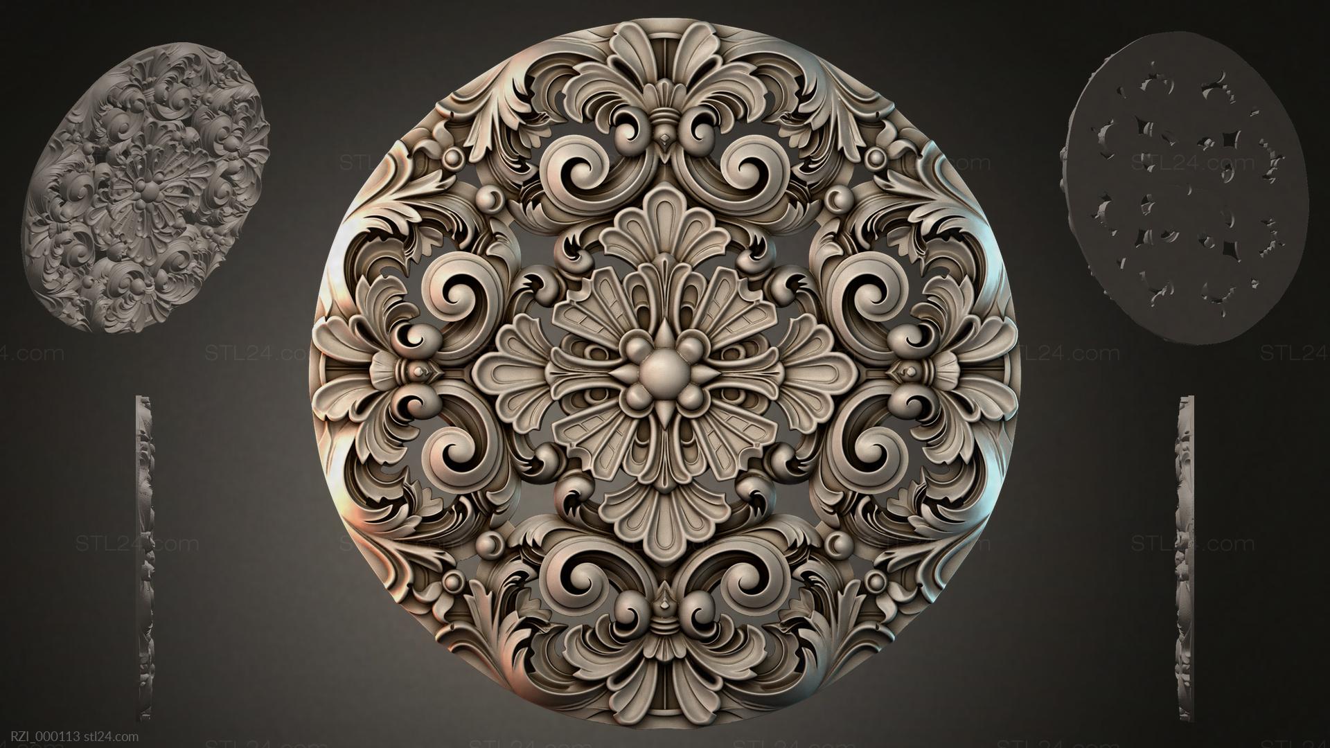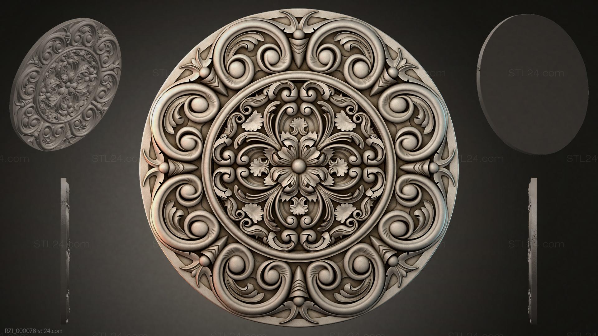 3D STL МОДЕЛЬ ДЛЯ ЧПУ Круглый декор, розетки RZI_000118