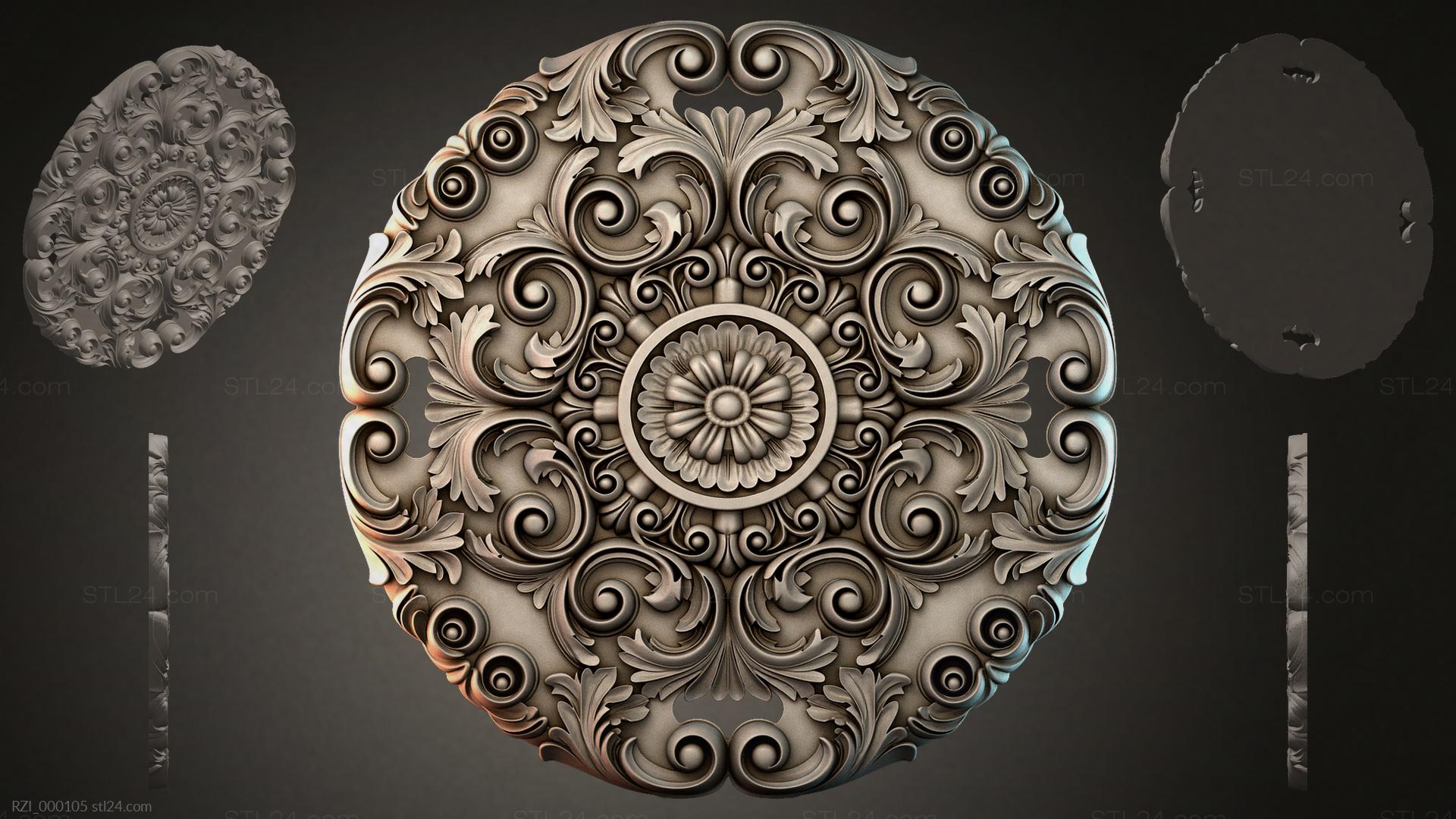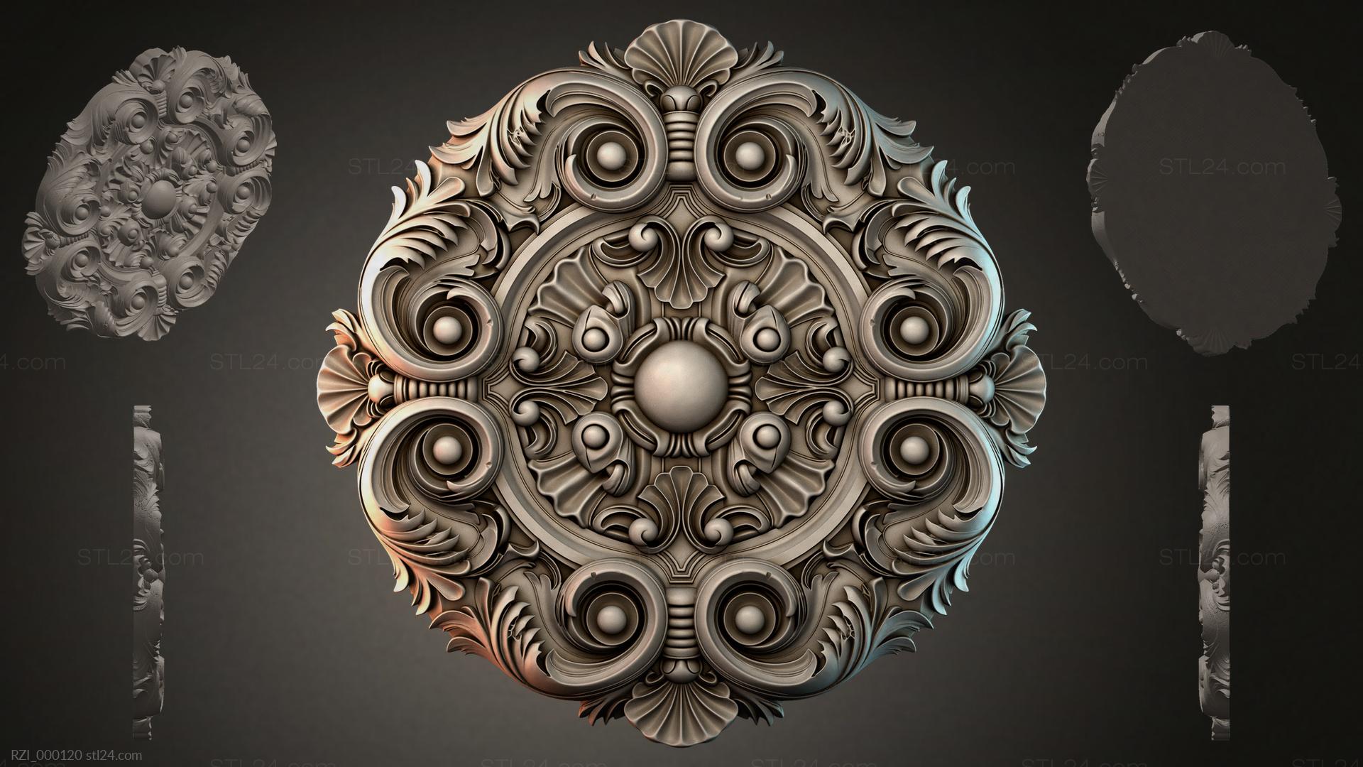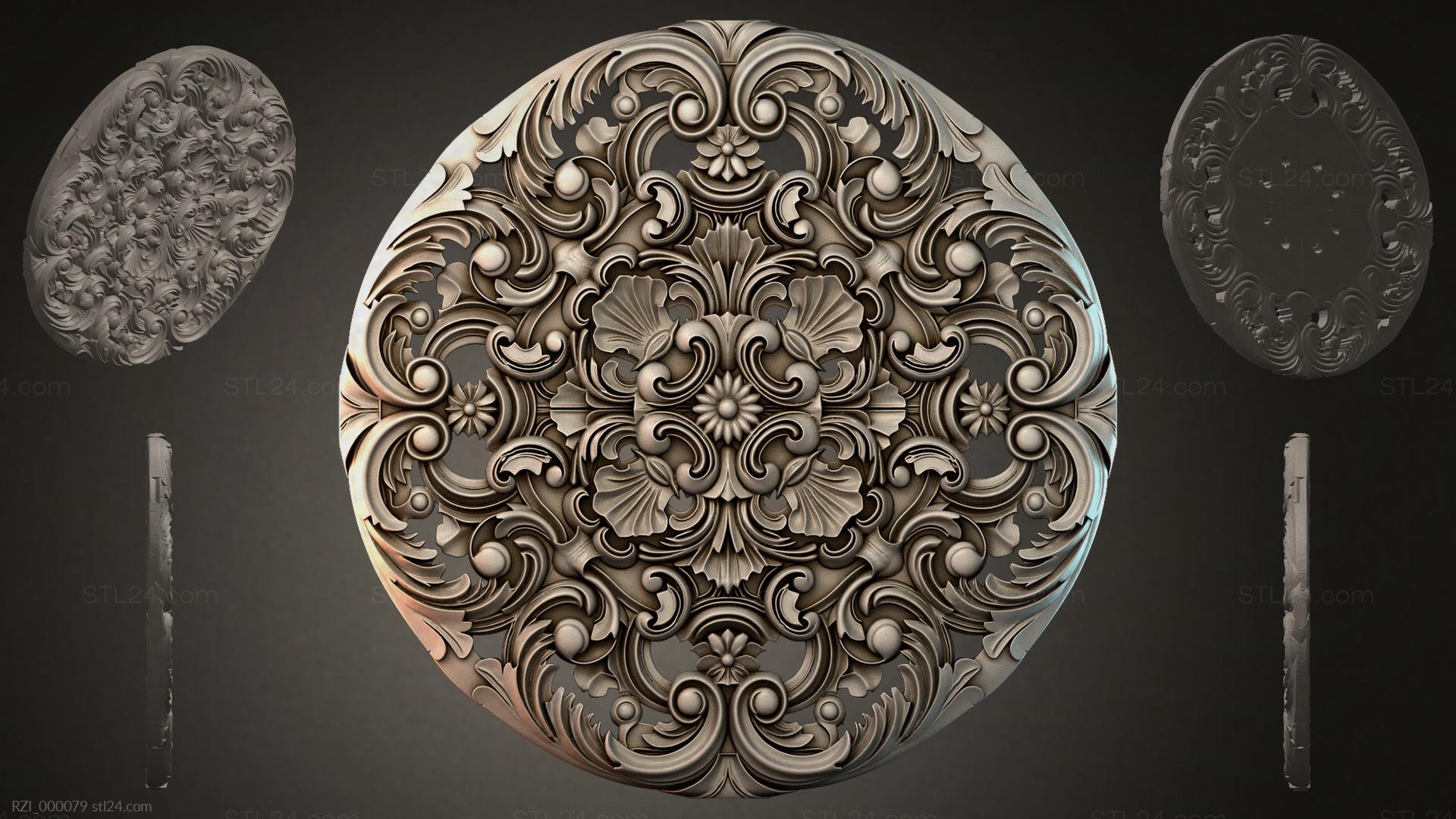 3D STL МОДЕЛЬ ДЛЯ ЧПУ Круглый декор, розетки RZI_000118