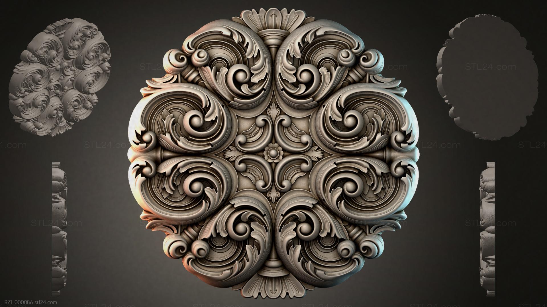 3D STL МОДЕЛЬ ДЛЯ ЧПУ Круглый декор, розетки RZI_000117