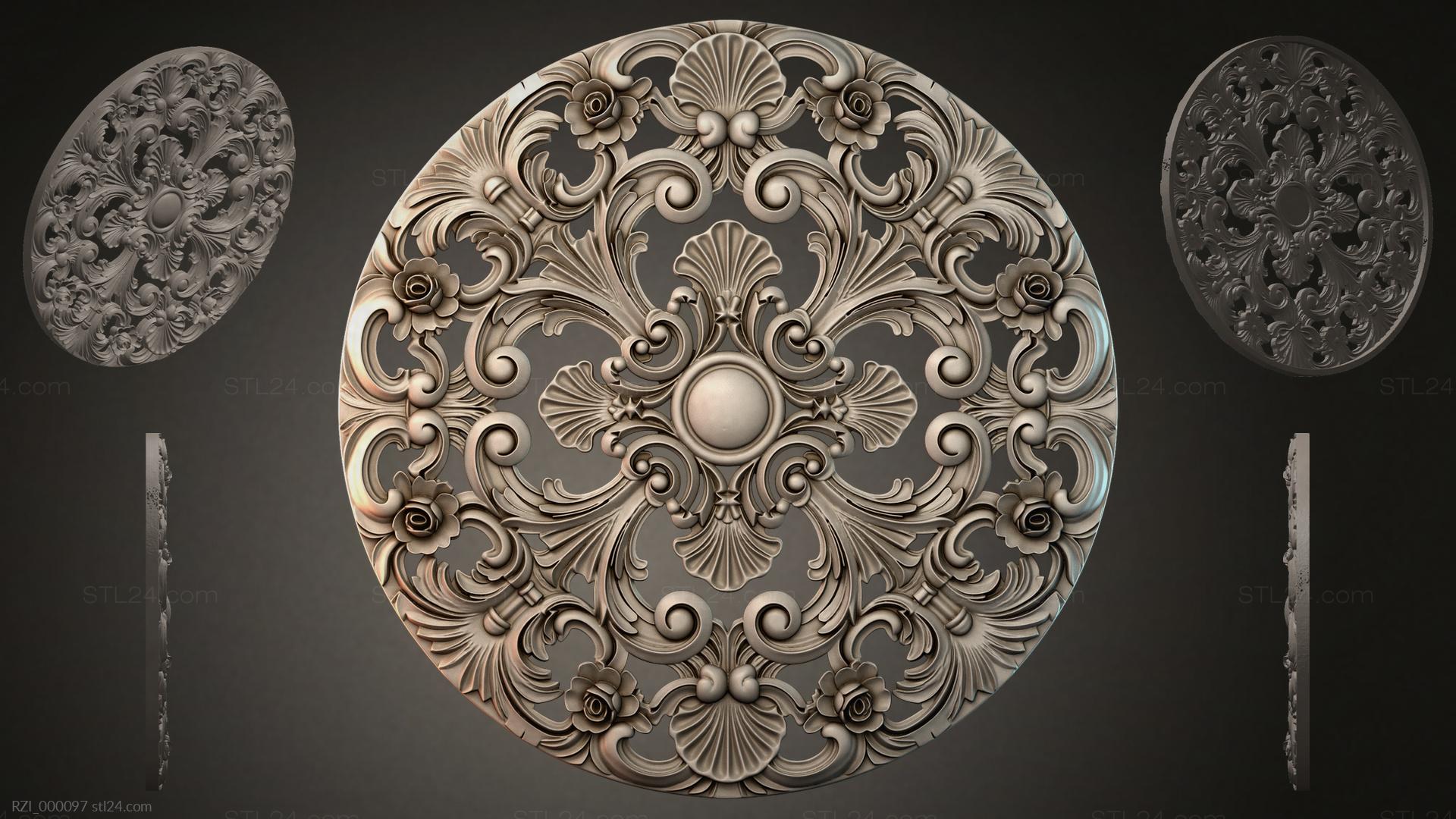3D STL МОДЕЛЬ ДЛЯ ЧПУ Круглый декор, розетки RZI_000097