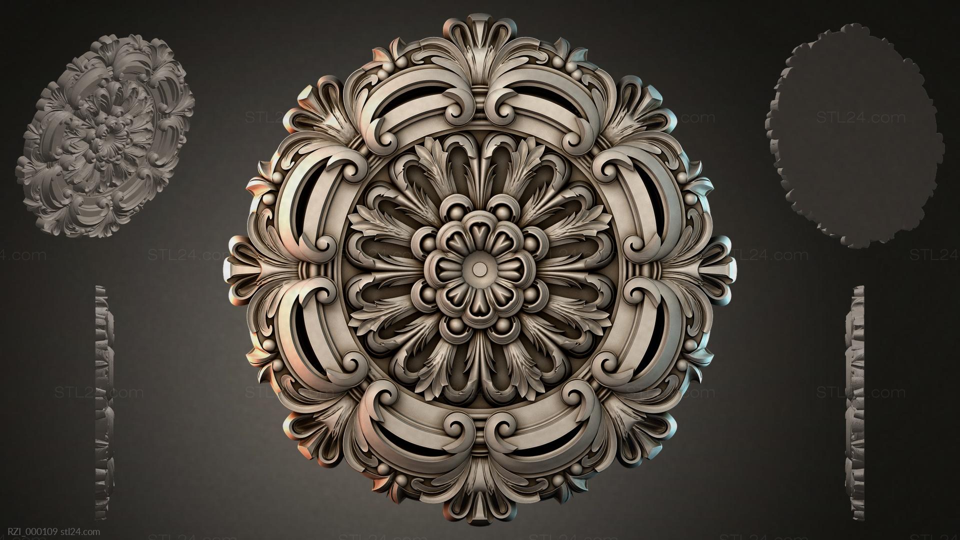 3D STL МОДЕЛЬ ДЛЯ ЧПУ Круглый декор, розетки RZI_000109