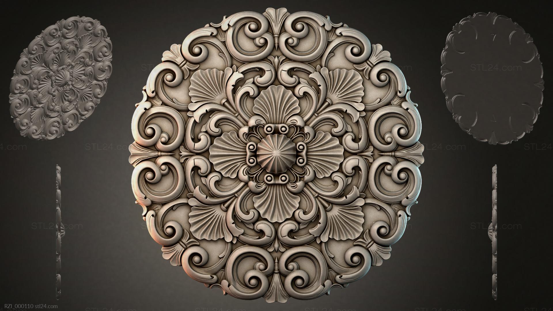 3D STL МОДЕЛЬ ДЛЯ ЧПУ Круглый декор, розетки RZI_000110