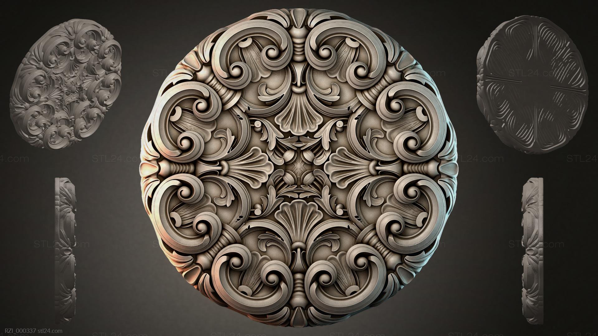 3D STL МОДЕЛЬ ДЛЯ ЧПУ и 3D печати - Круглый декор, розетки RZI 000337