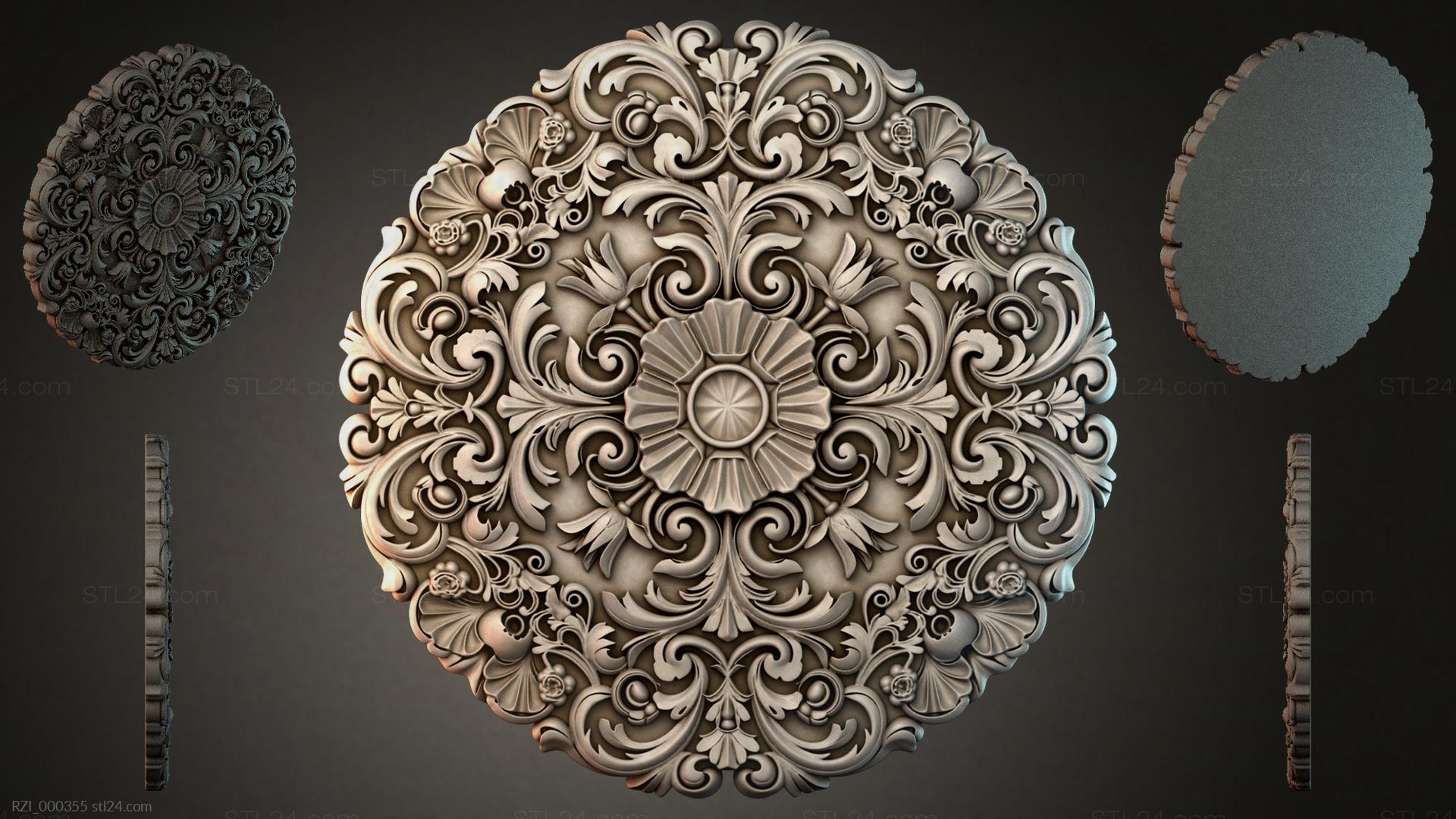 3D STL МОДЕЛЬ ДЛЯ ЧПУ и 3D печати - Круглый декор, розетки RZI 000355
