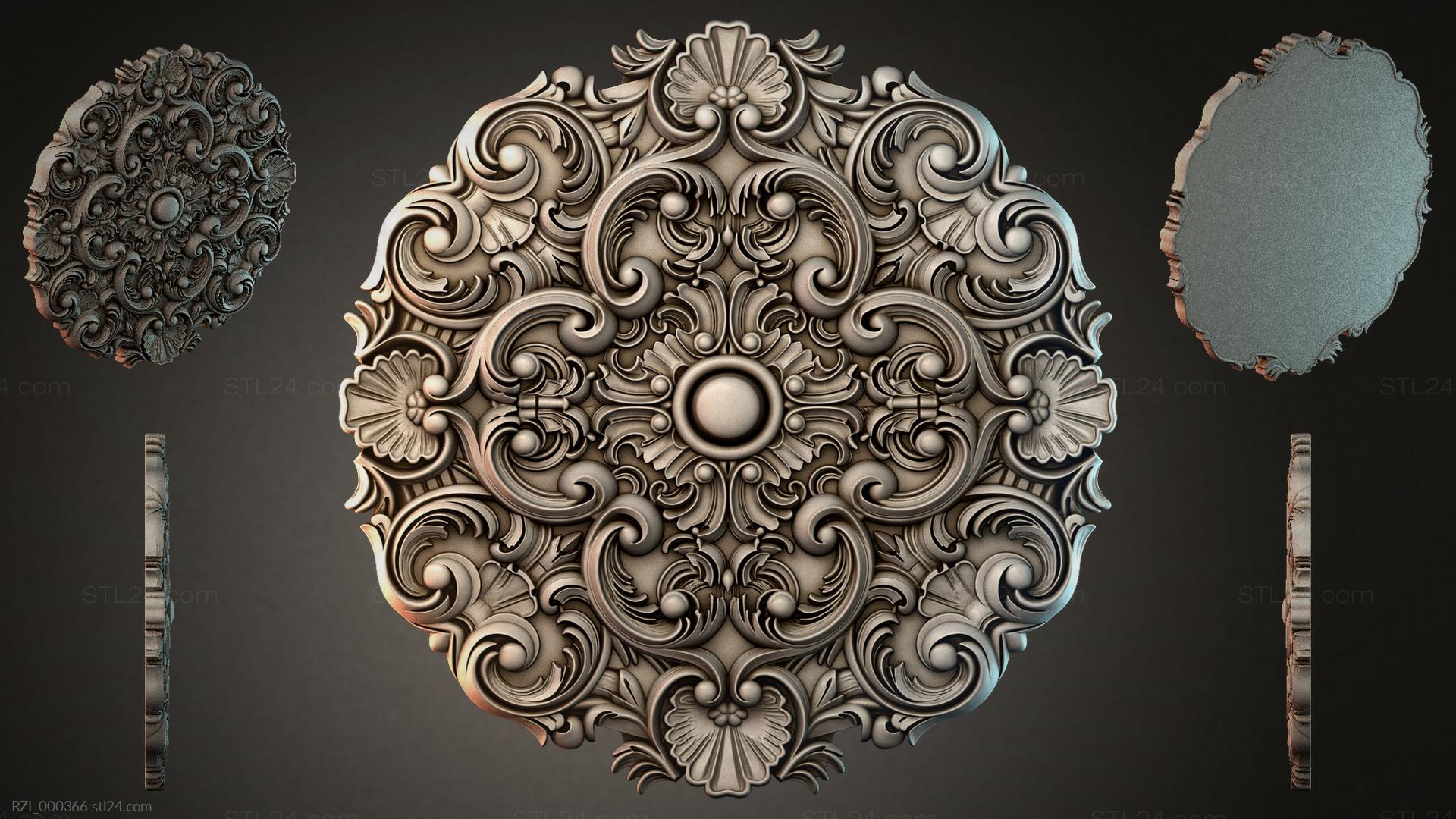 3D STL МОДЕЛЬ ДЛЯ ЧПУ и 3D печати - Круглый декор, розетки RZI 000366
