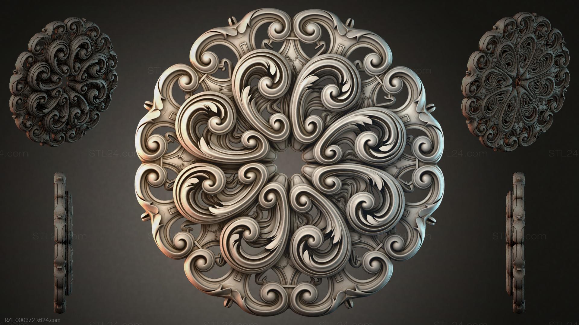 3D STL МОДЕЛЬ ДЛЯ ЧПУ и 3D печати - Круглый декор, розетки RZI 000372