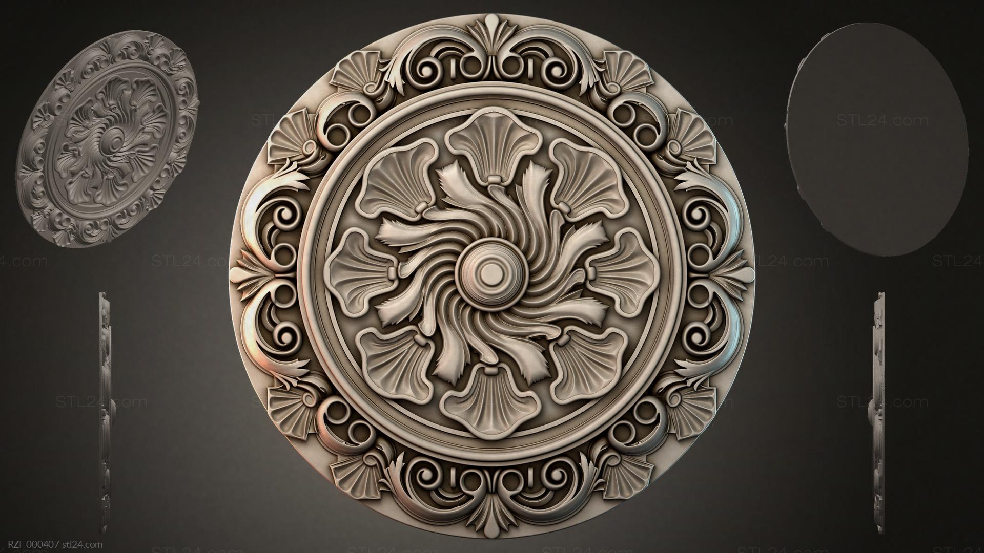 3D STL МОДЕЛЬ ДЛЯ ЧПУ и 3D печати - Круглый декор, розетки RZI 000407