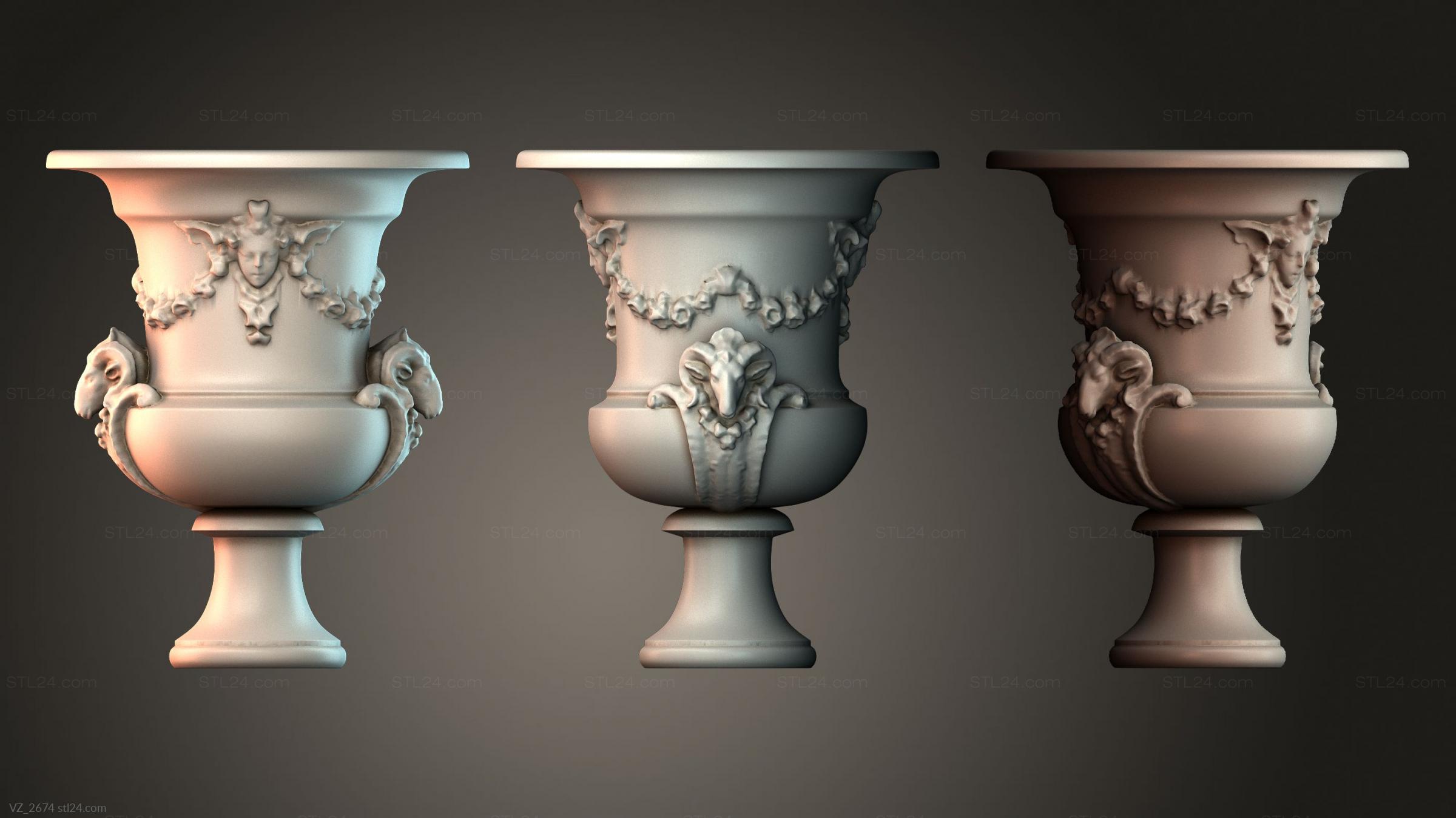 Новые 3д модели ваз, кашпо и чаш для интерьера вы можете купить в нашем интернет-магазине моделей для ЧПУ станков по дереву. Предлагаем широкий выбор качественных эксклюзивных моделей ваз в классических стилях, подготовленных в формате Stl, подходящем для загрузки в управляющую программу ЧПУ станка.