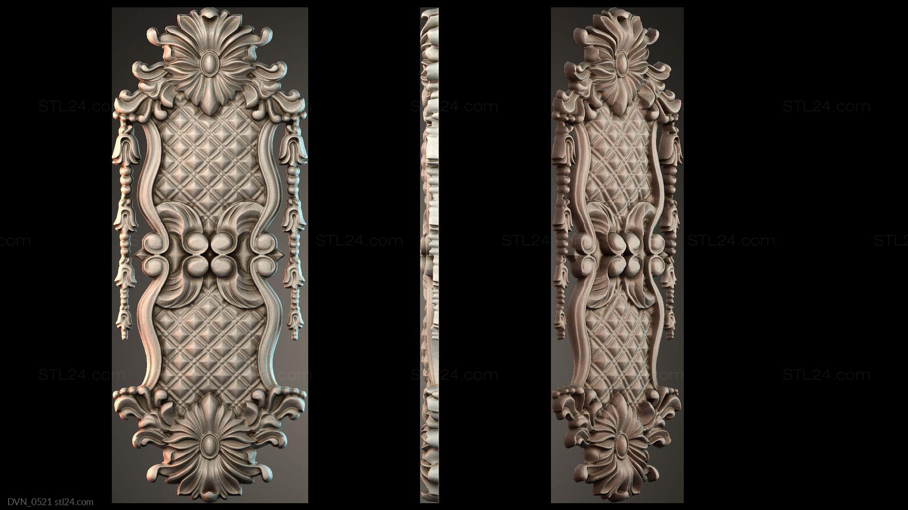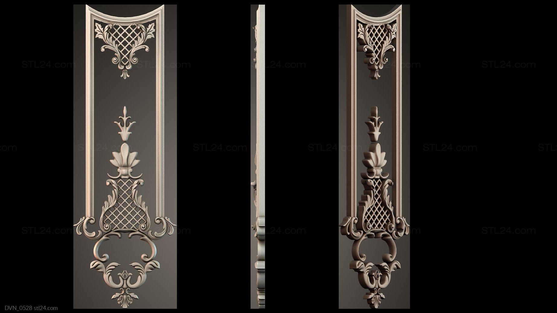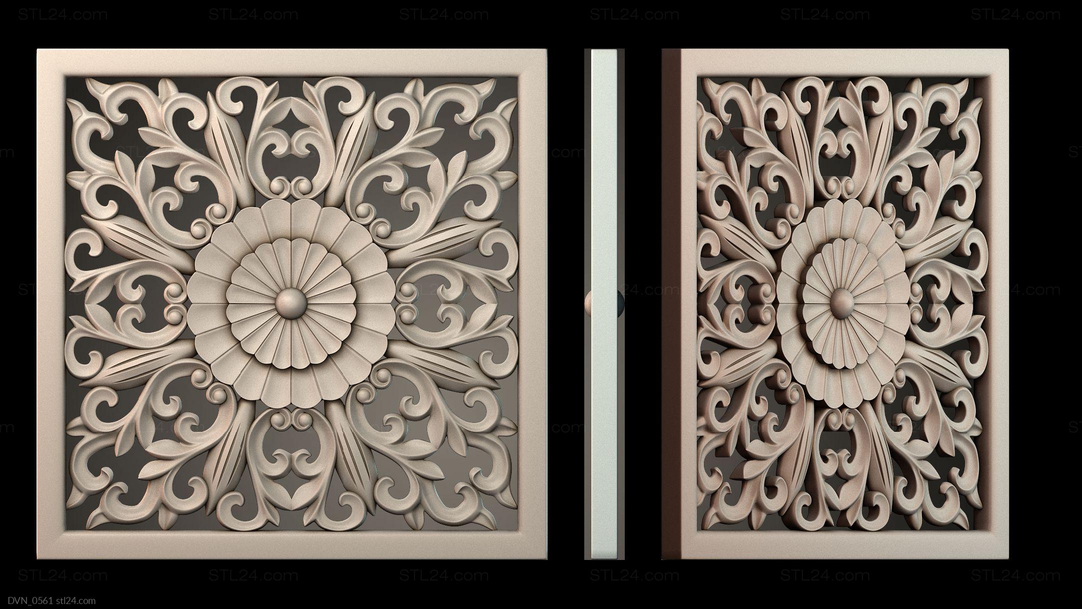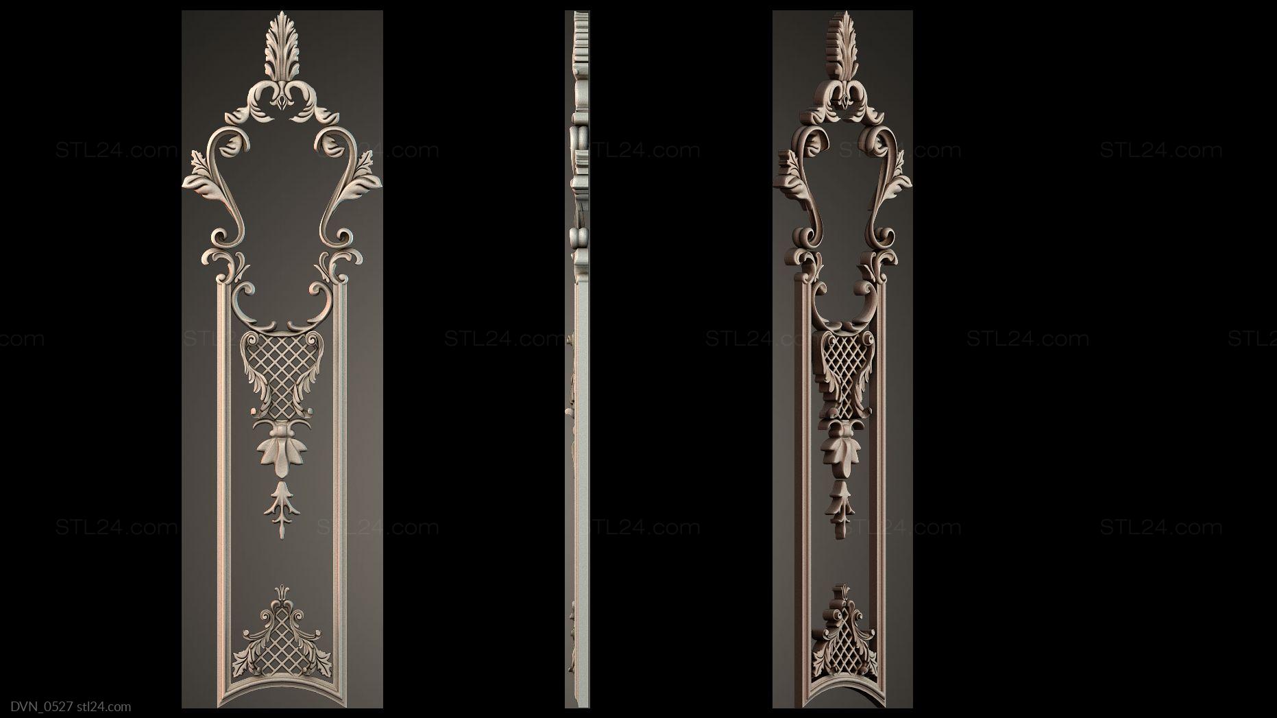 Door onlays of any shape and configuration can be made on a CNC machine in no time. You can buy 3D models in the stl file format for the cutting equipment control program from us. We offer a wide range of decorative onlays, a lot of brand new unusual options at great prices!