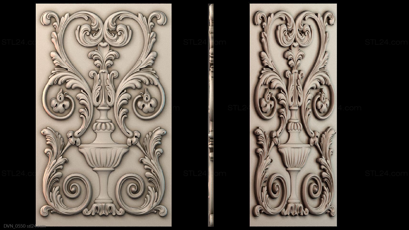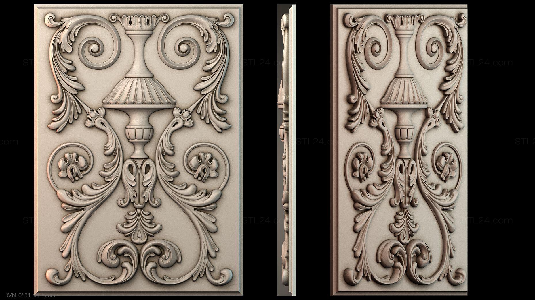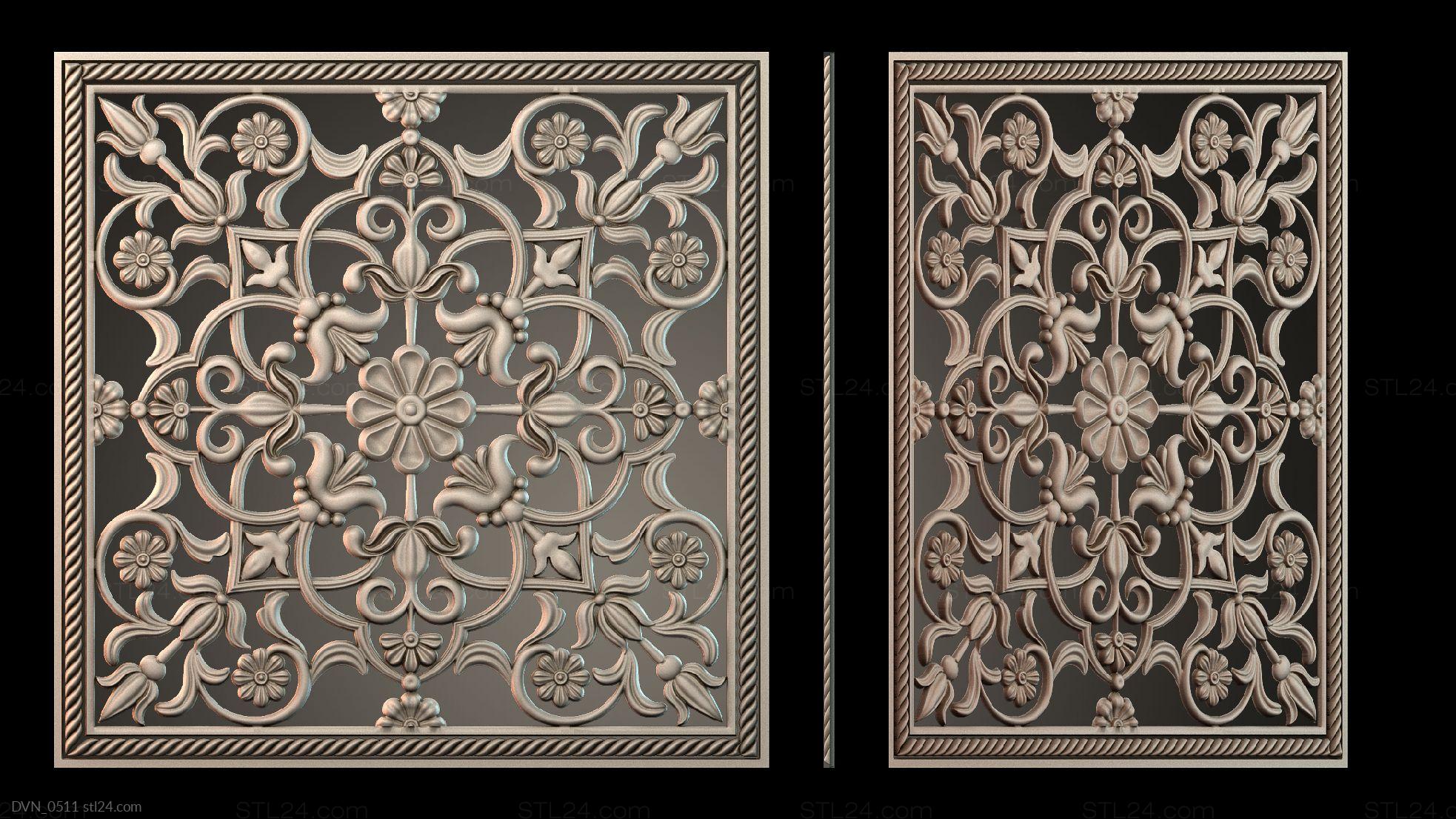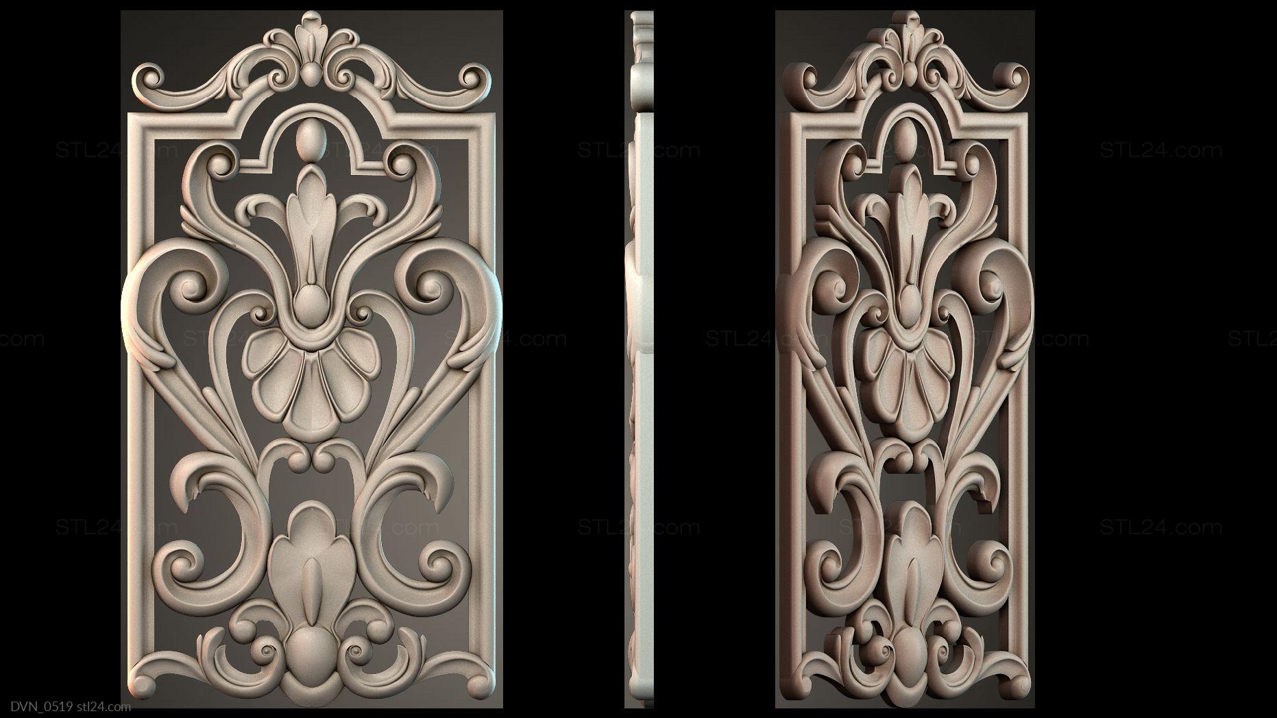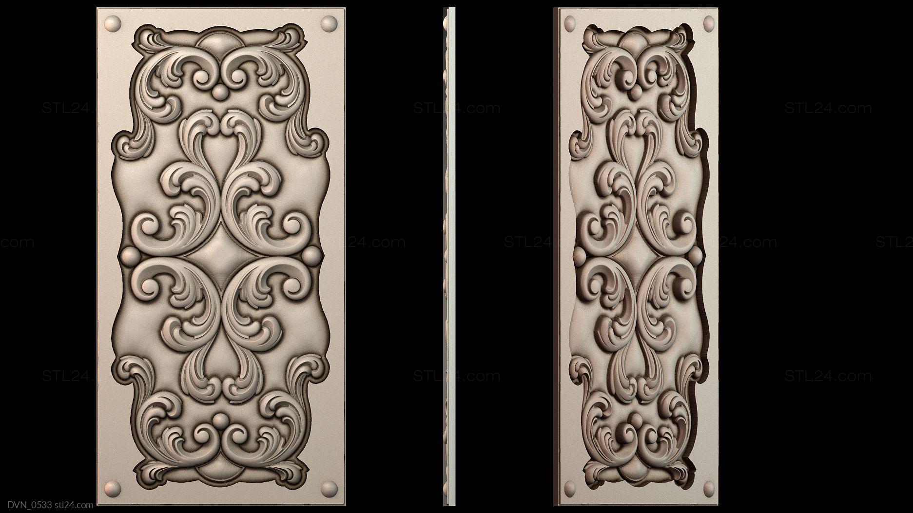 Door onlays of any shape and configuration can be made on a CNC machine in no time. You can buy 3D models in the stl file format for the cutting equipment control program from us. We offer a wide range of decorative onlays, a lot of brand new unusual options at great prices!