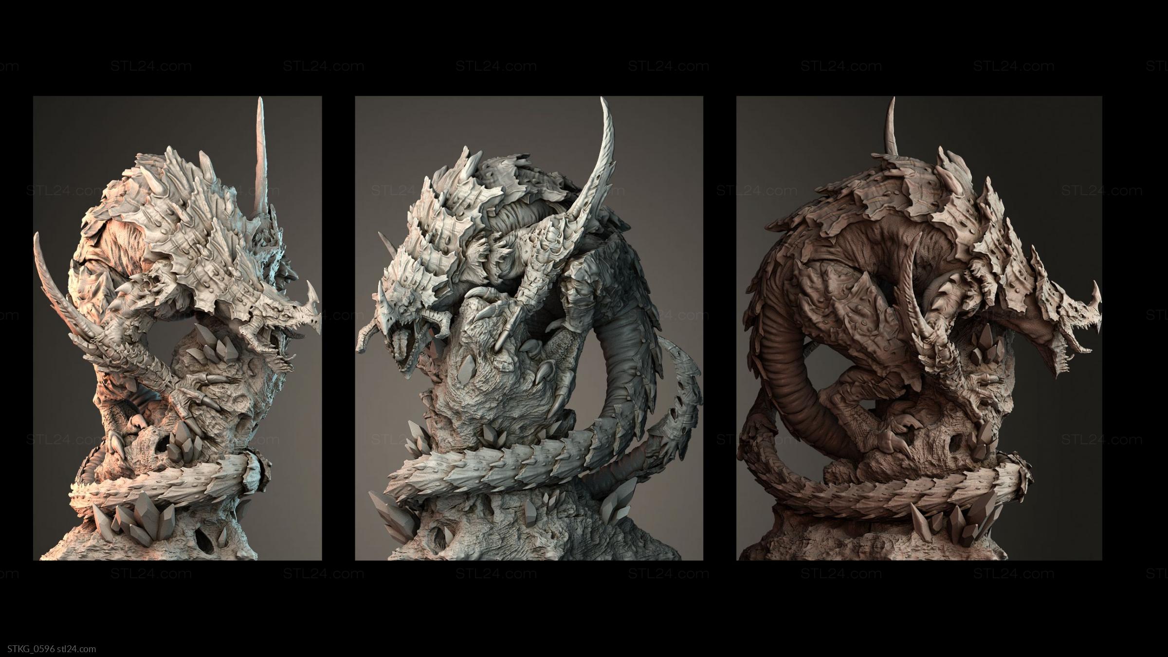 3D STL model for CNC and 3D printers - Figurines of griffins and dragons STKG 0596