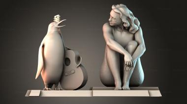 3D STL MODEL FOR CNC Figurines simple Penguin With Guitar