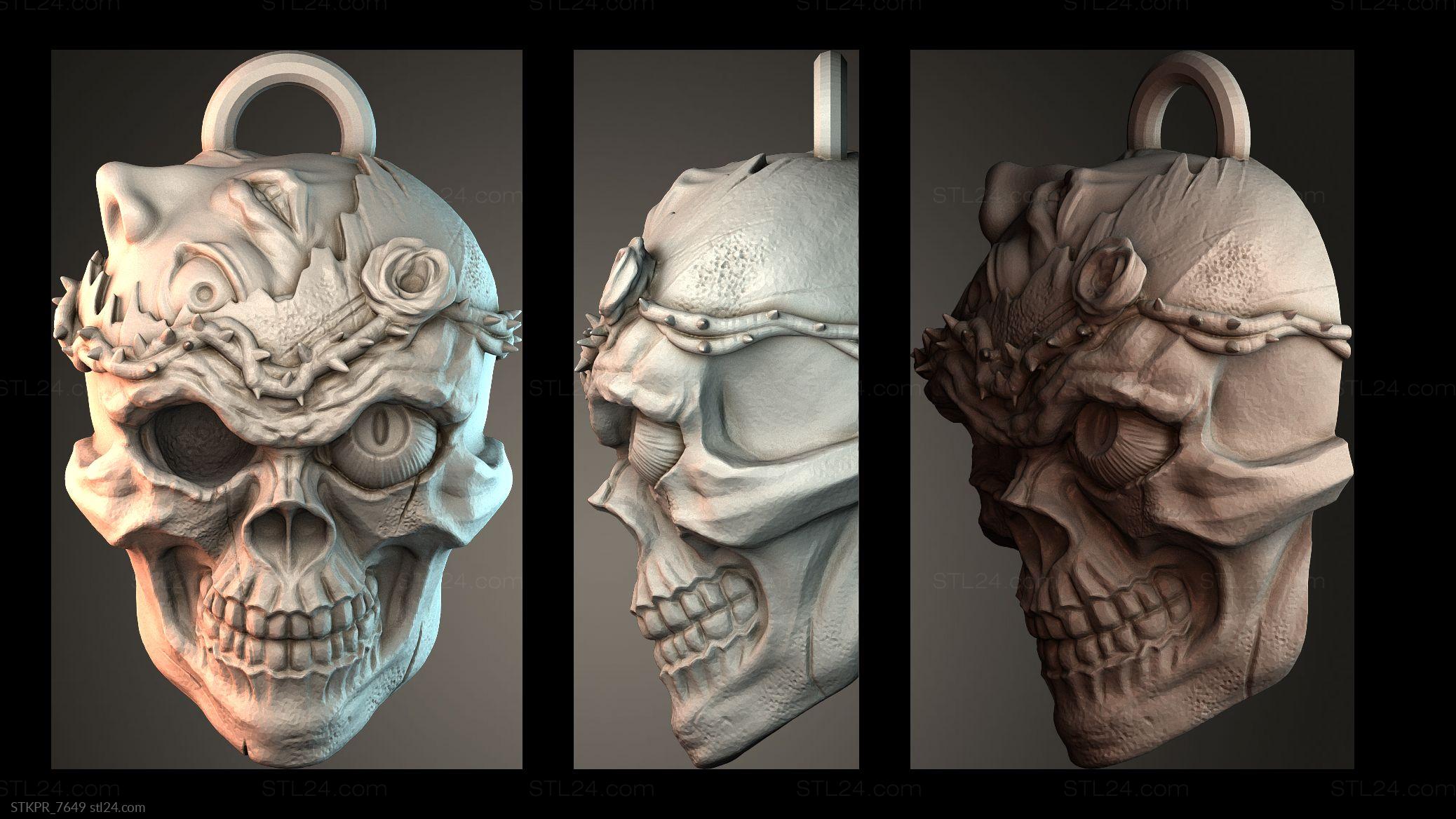 3D STL MODEL FOR CNC Figurines simple Crowned Skull Pendant