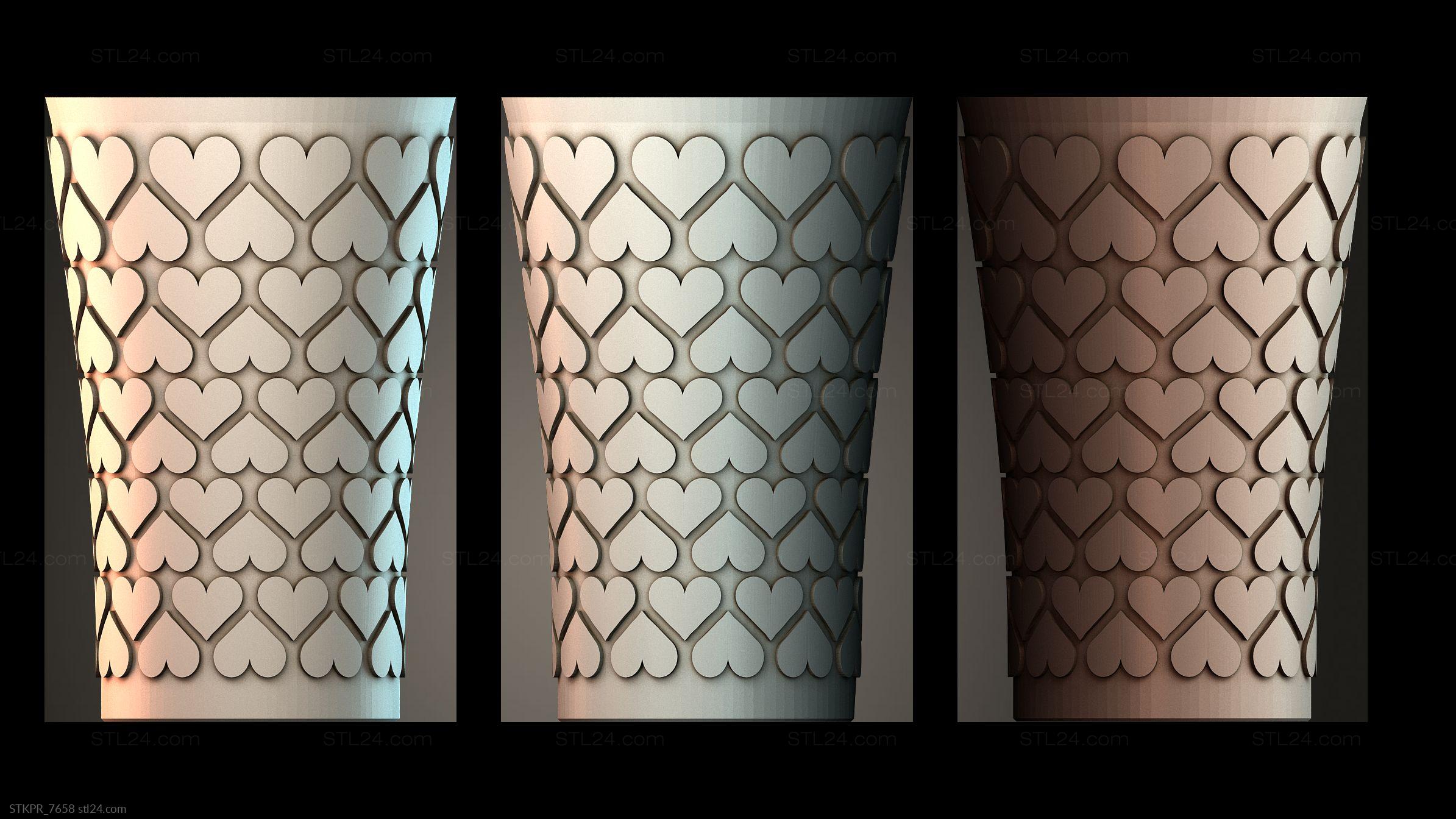 3D STL MODEL FOR CNC Figurines simple Heartpatterned Vase