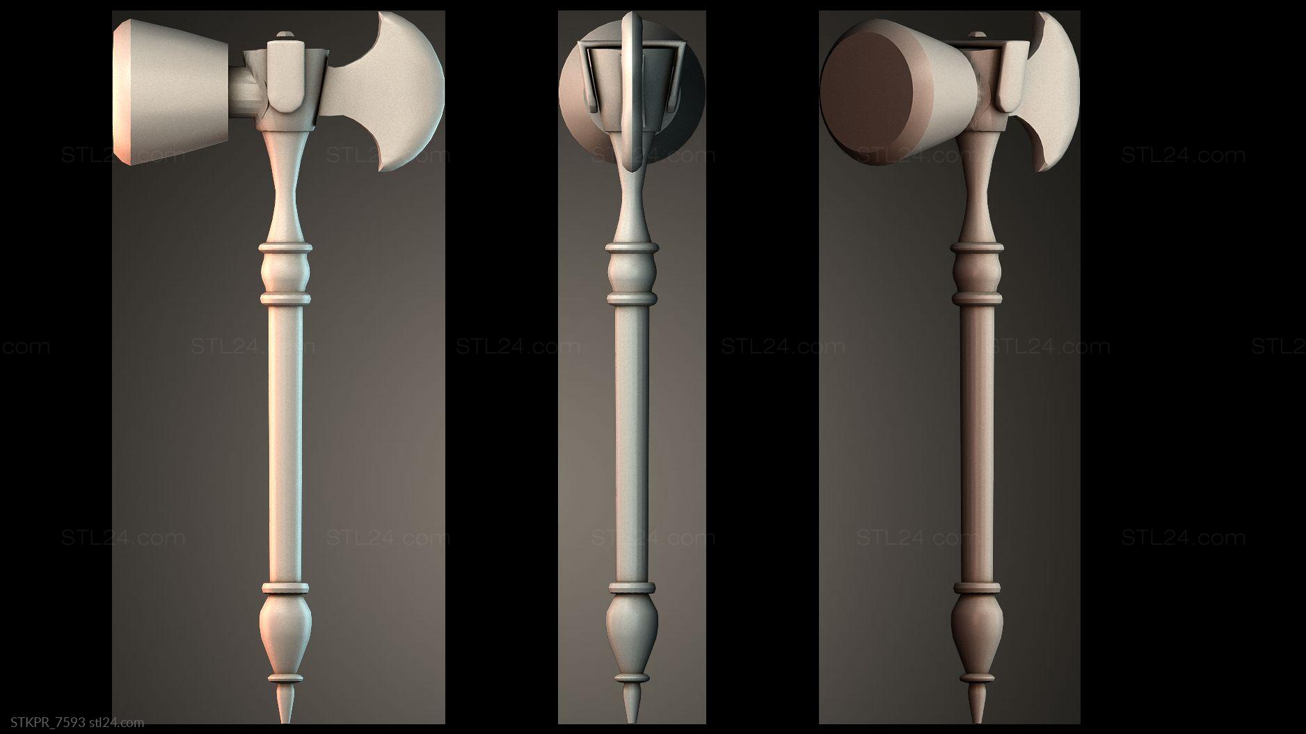 3D STL MODEL FOR CNC Figurines simple Fantasy Battle Axe